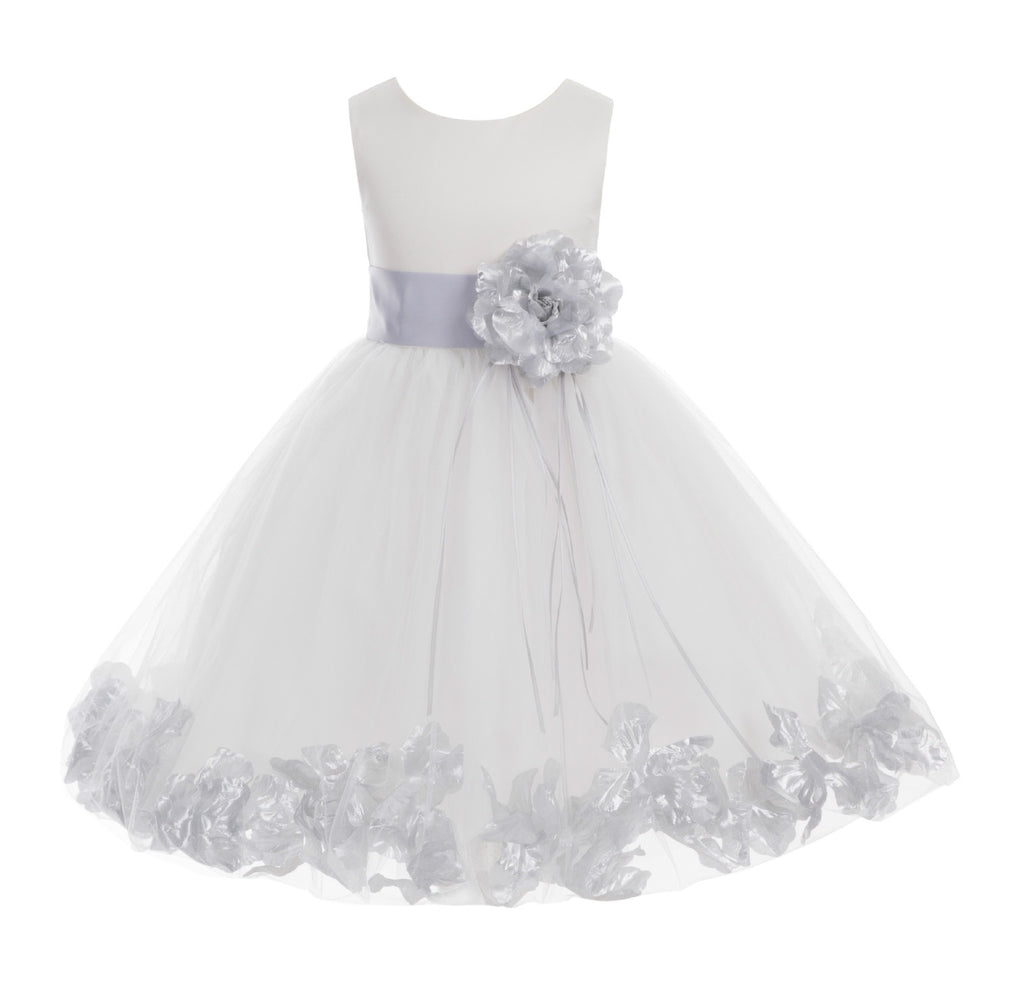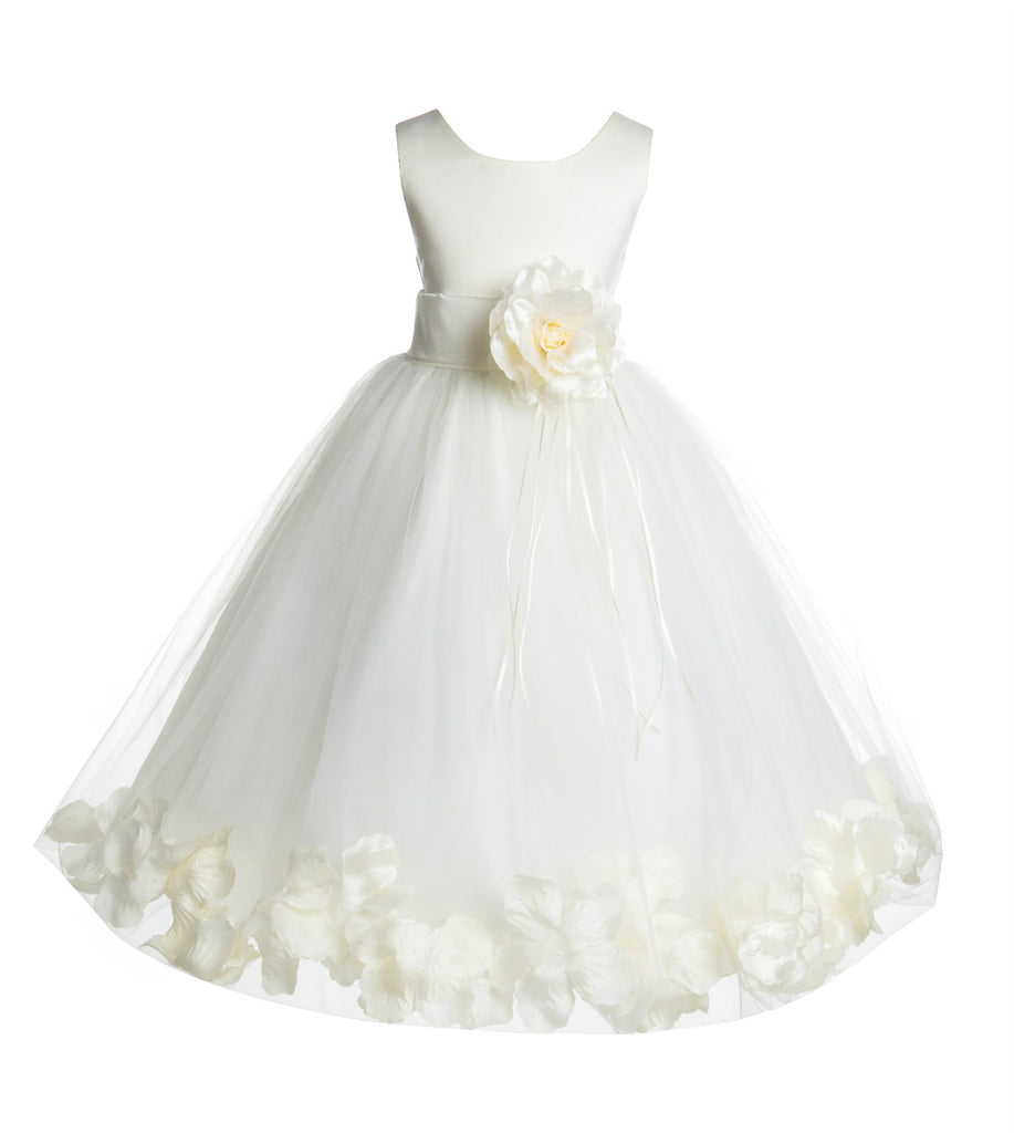 Ivory Tulle Floral Rose Petals Princess Wedding Pageant Recital Birthday Flower Girl Dress 007(2)