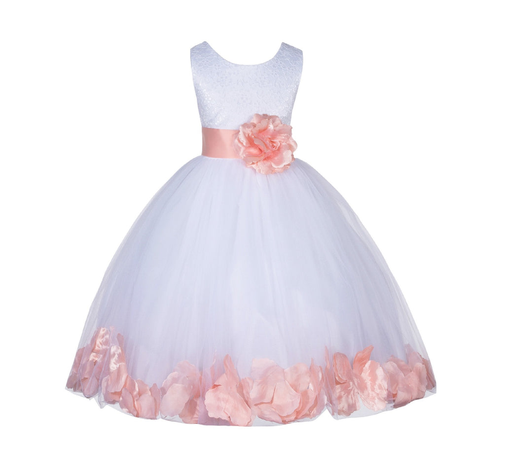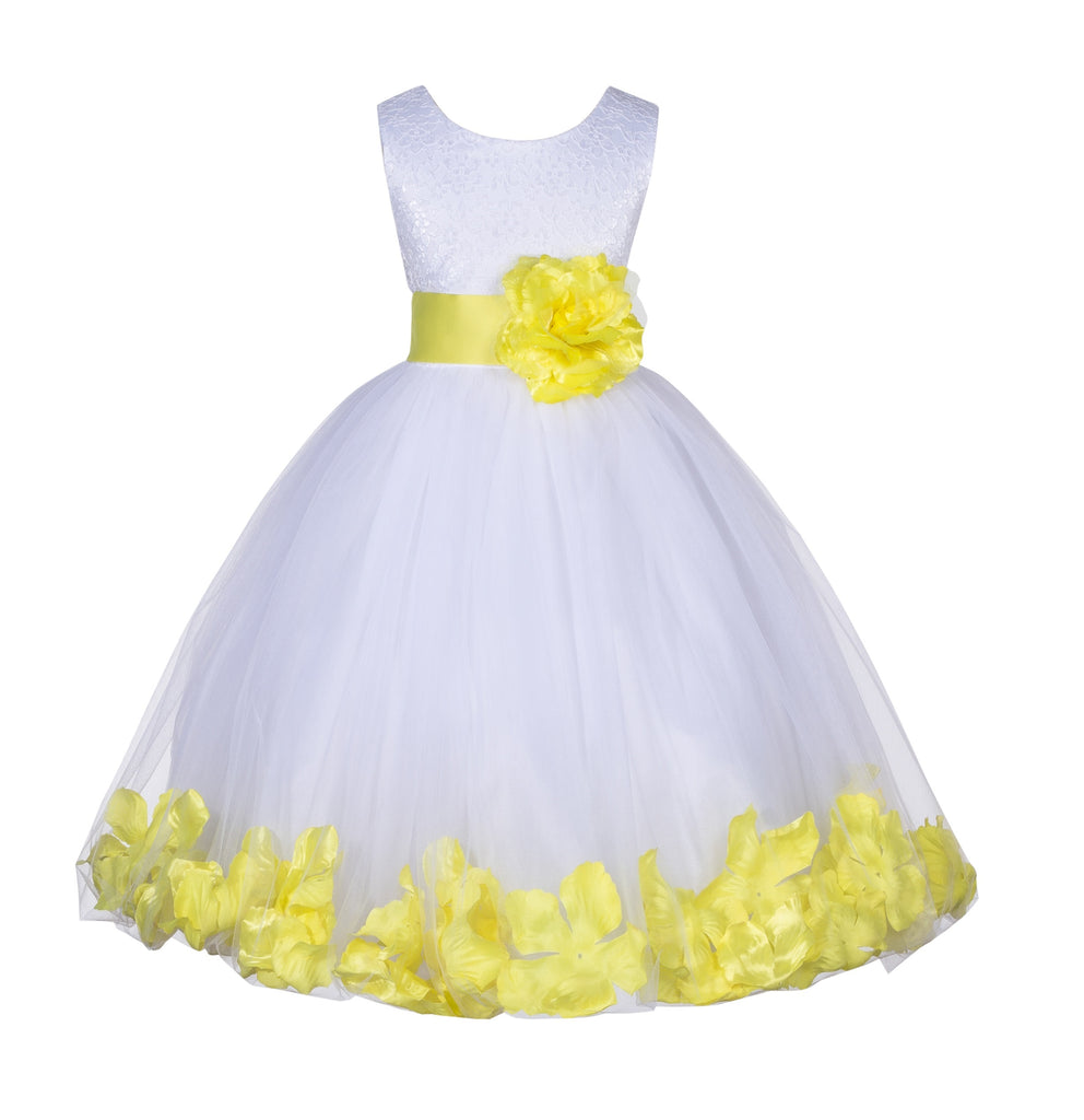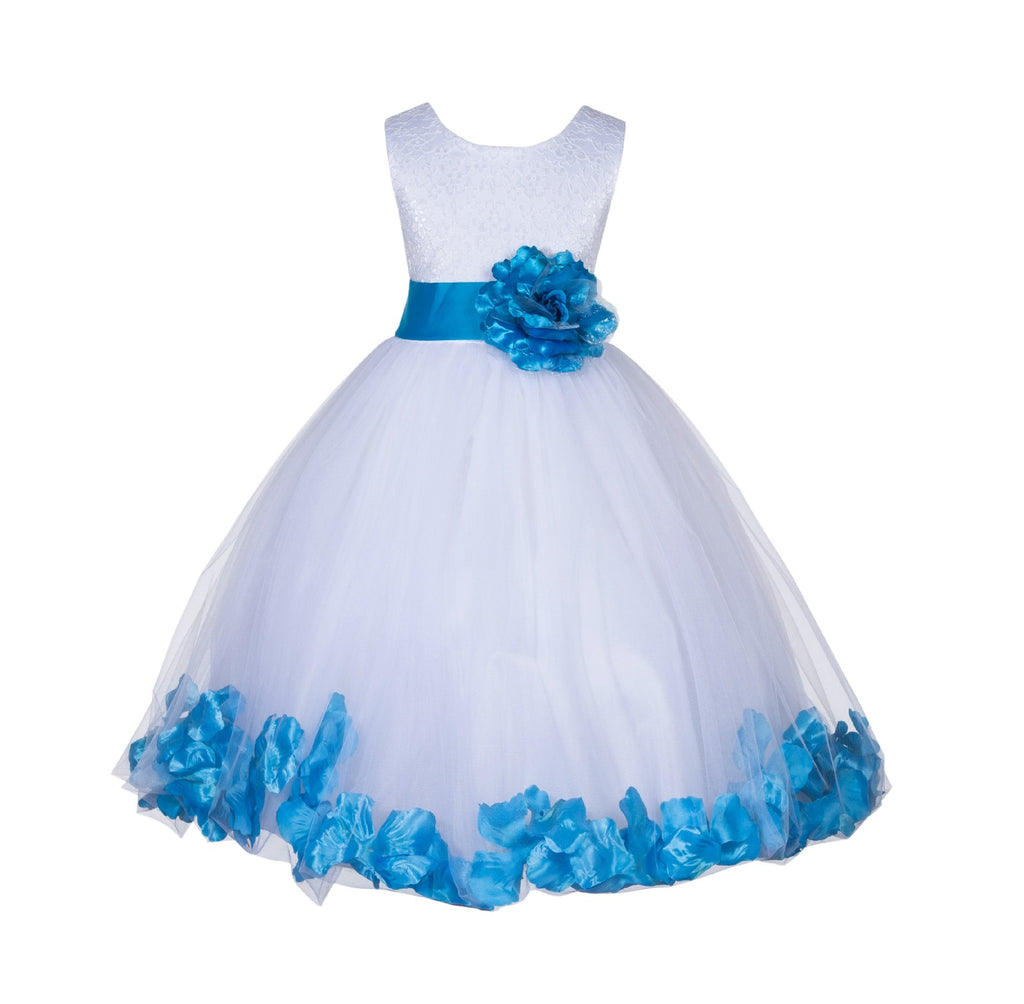 White Lace Top Tulle Floral Petals Flower Girl Dress Birthday Girl Junior Pageant Bridesmaid 165S(1)