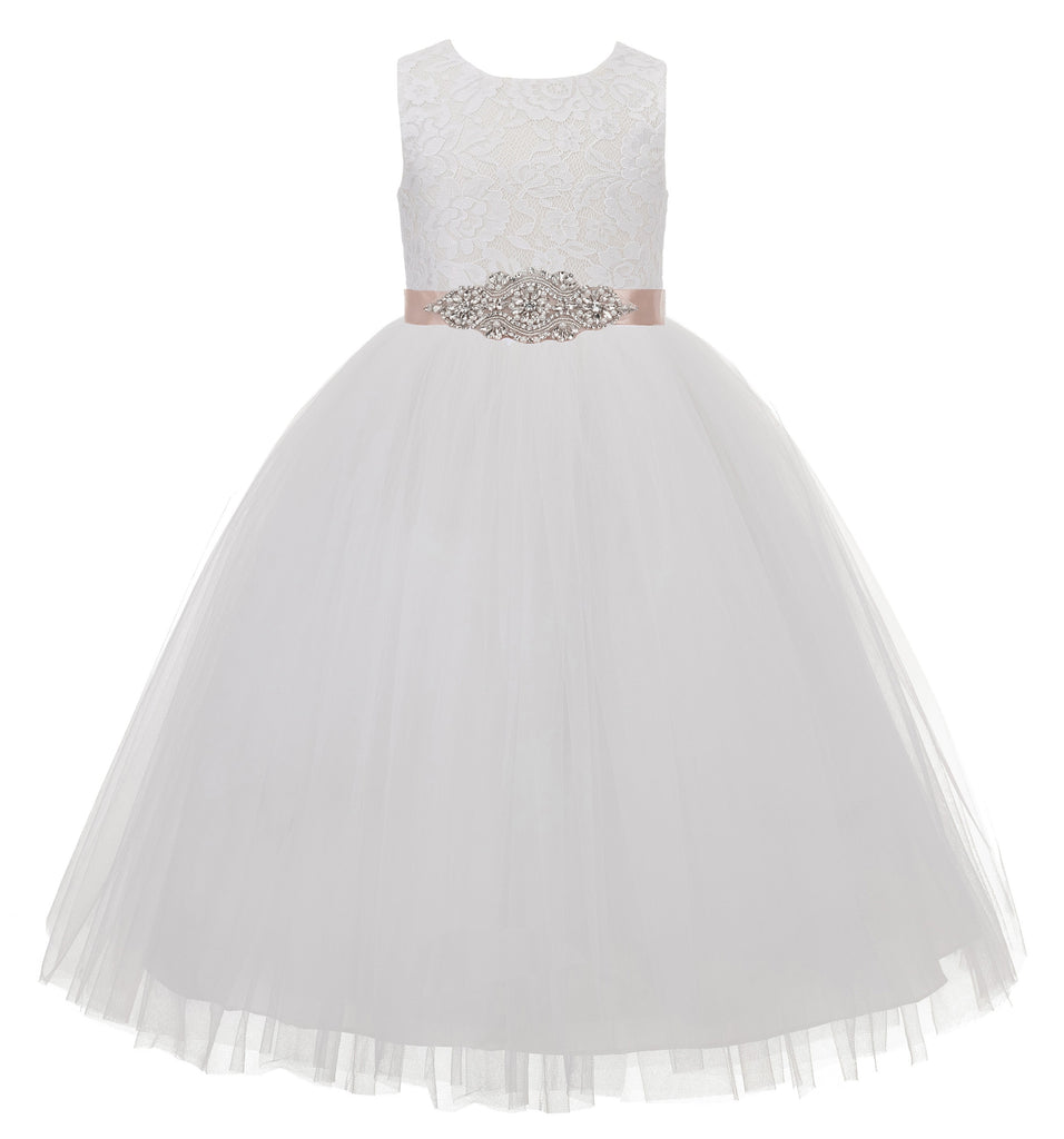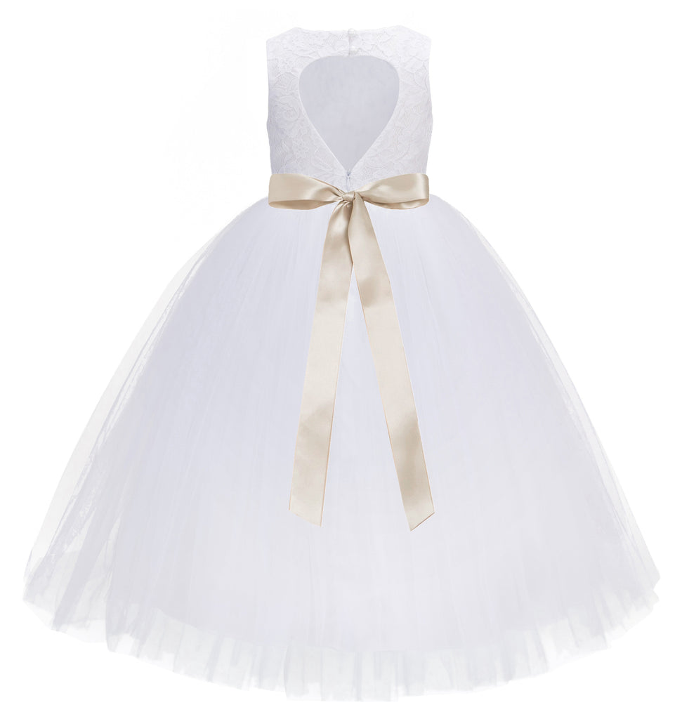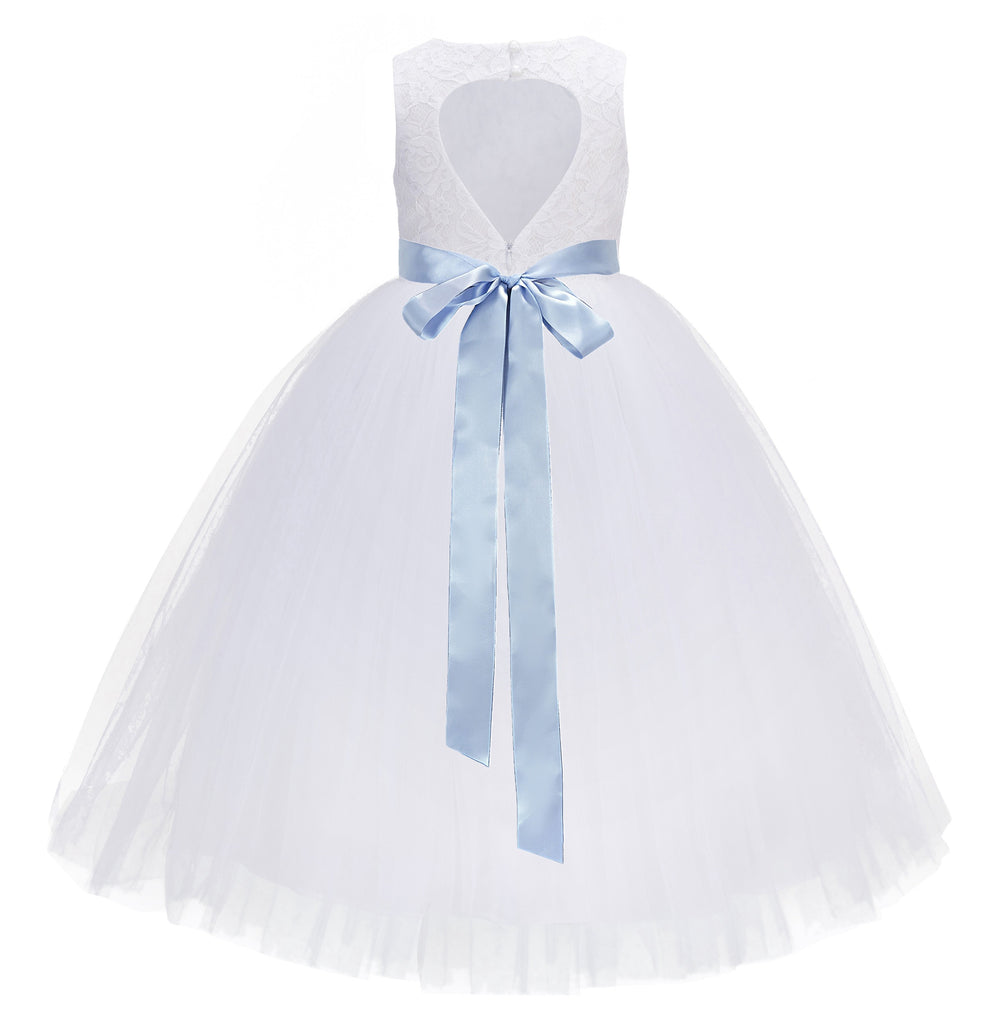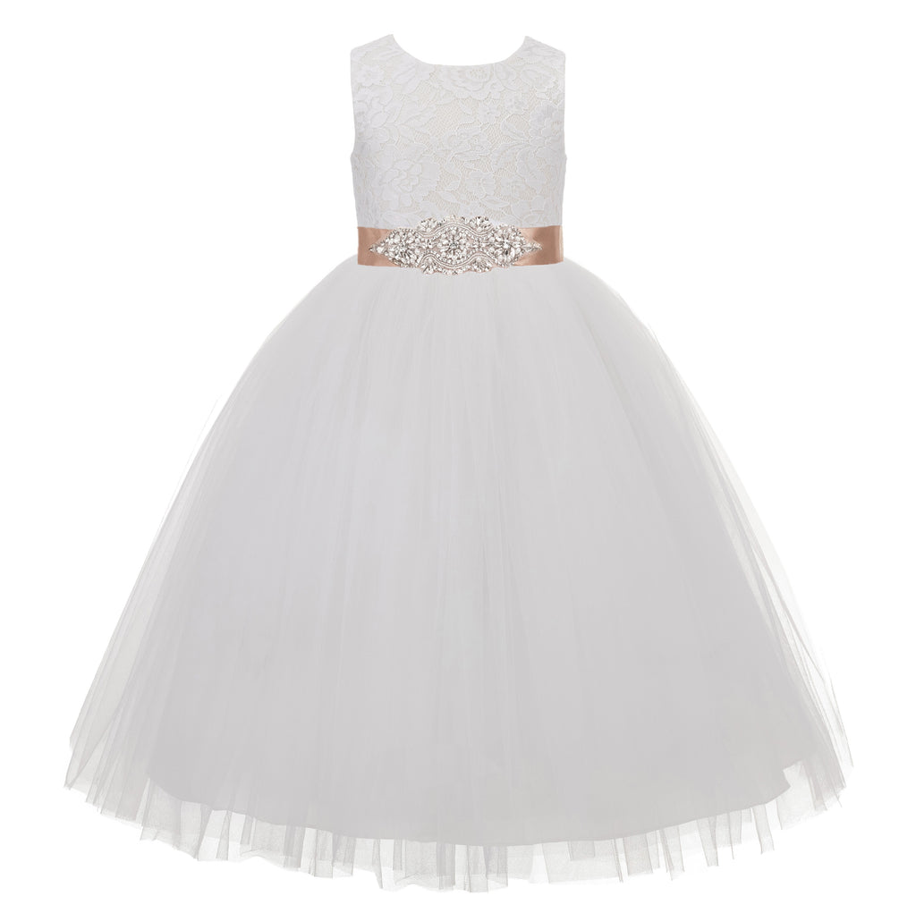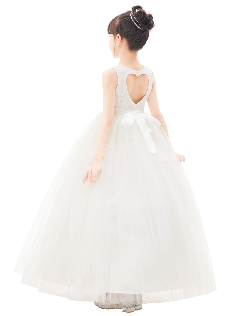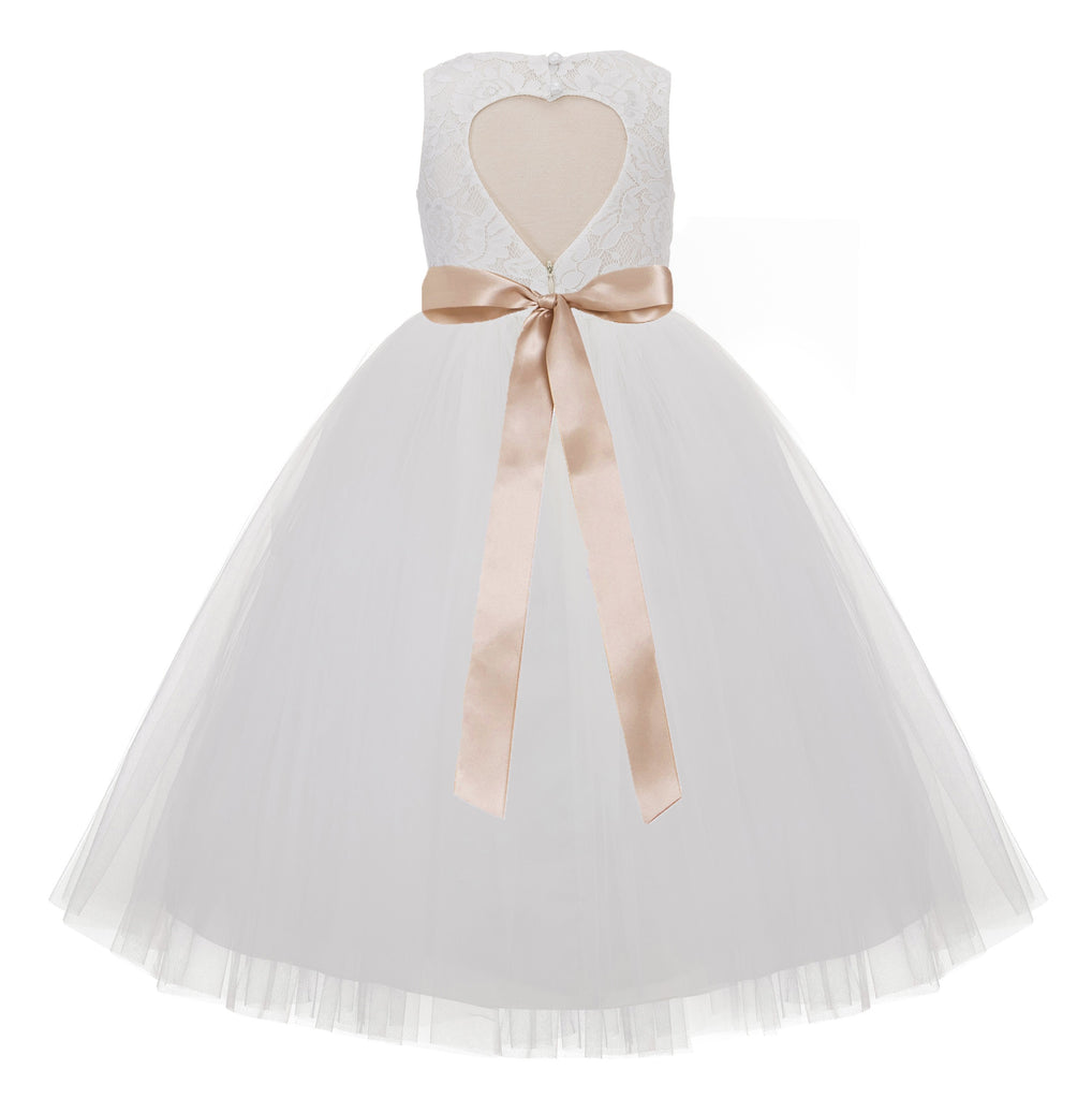 Heart Cutout Floral Lace Flower Girl Dress with Rhinestone Sash Junior Bridesmaid Gown Toddler 172R3