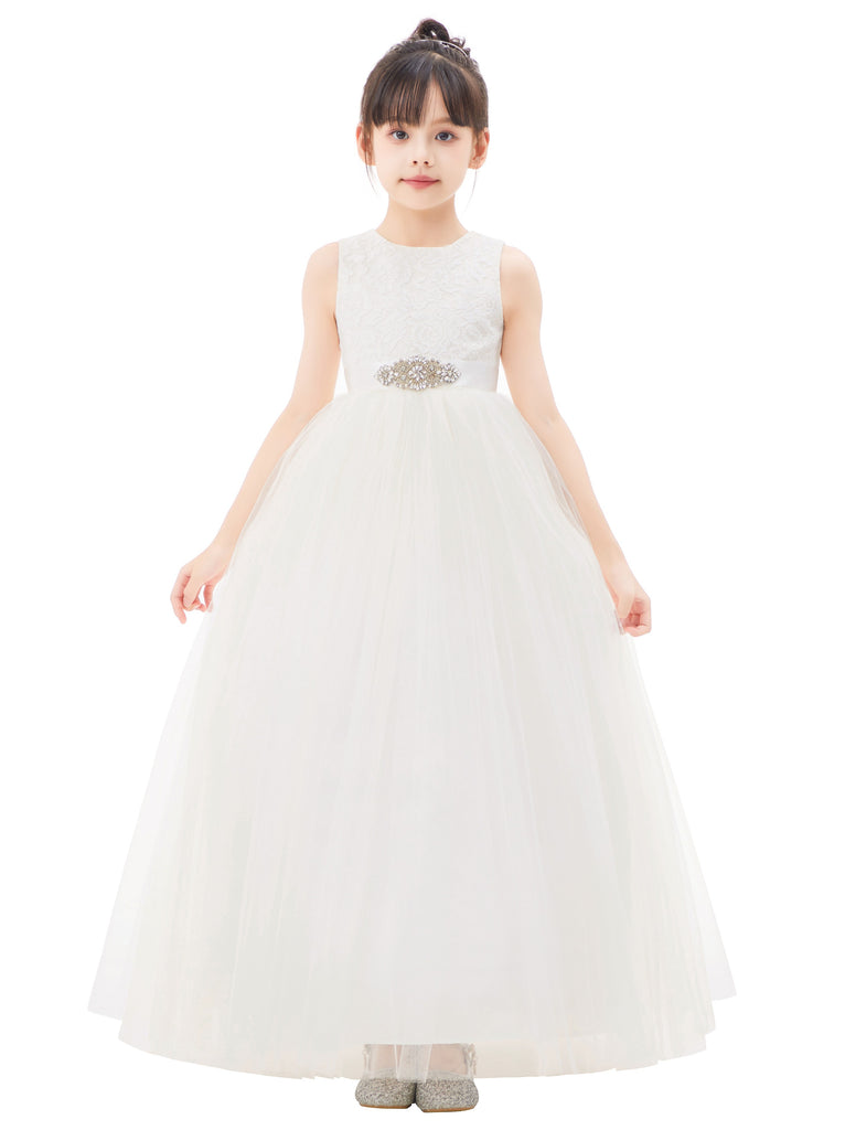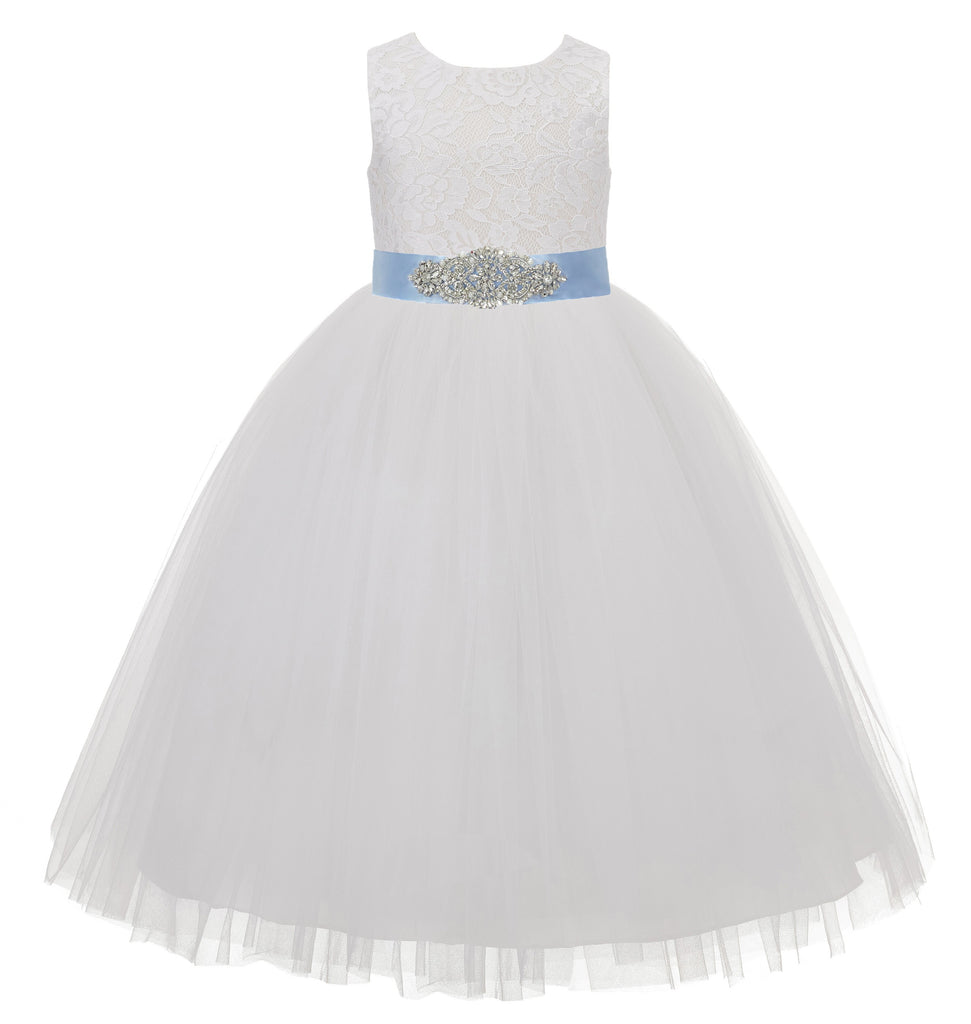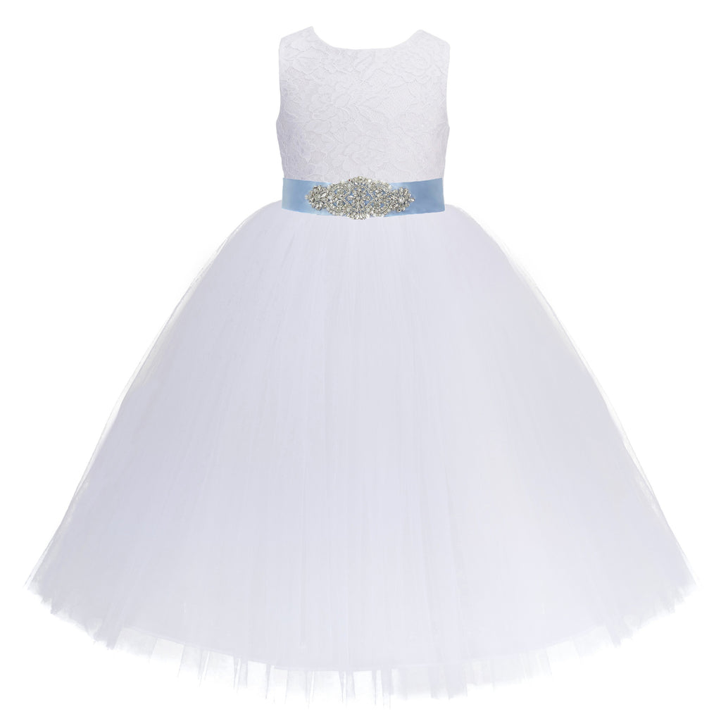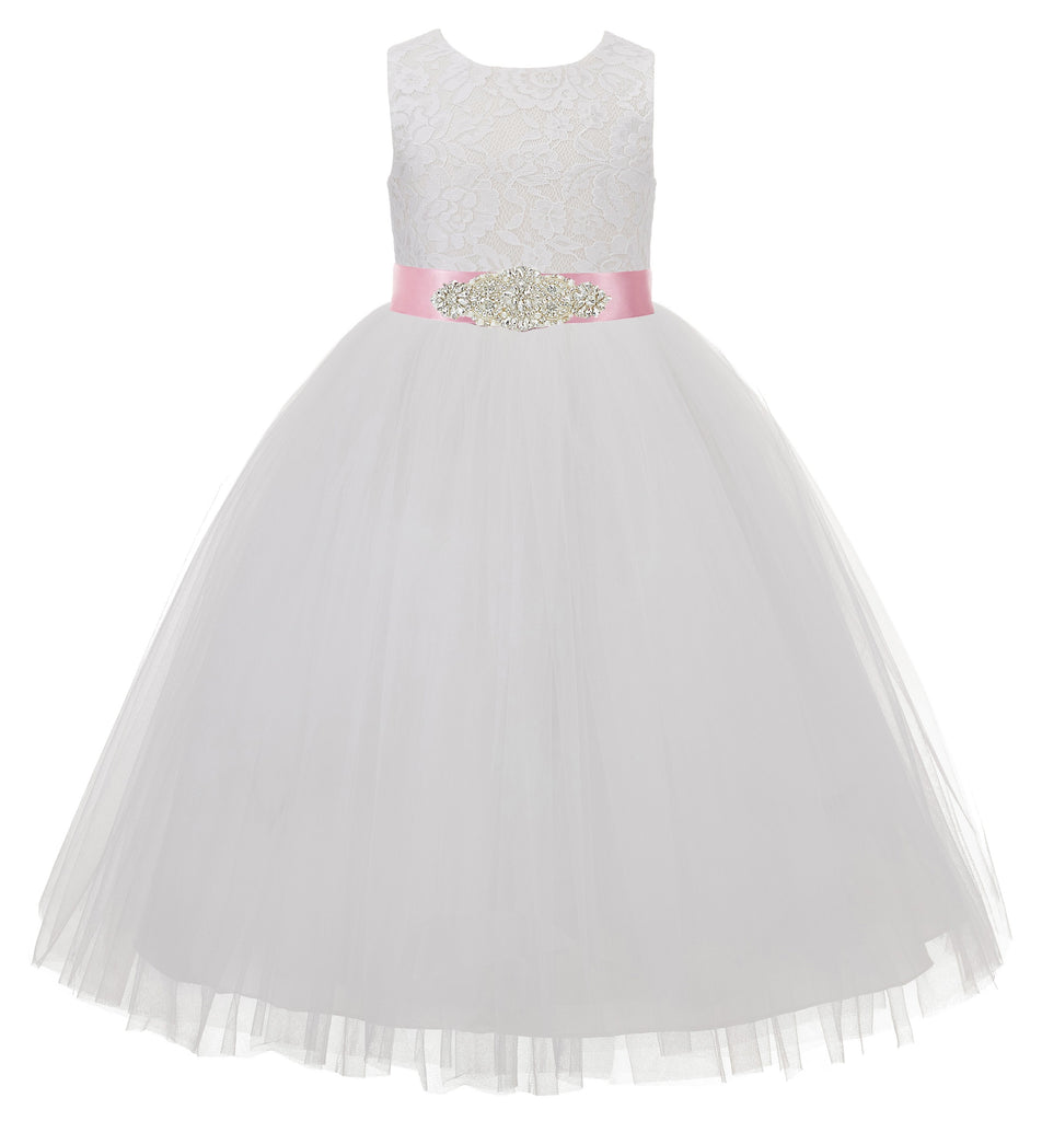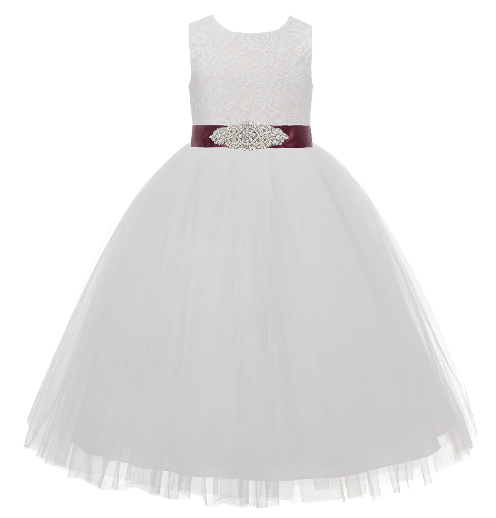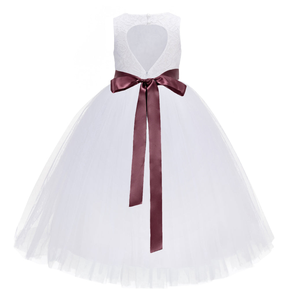 Heart Cutout Floral Lace Flower Girl Dress with Rhinestone Sash Junior Bridesmaid Gown Toddler 172R3