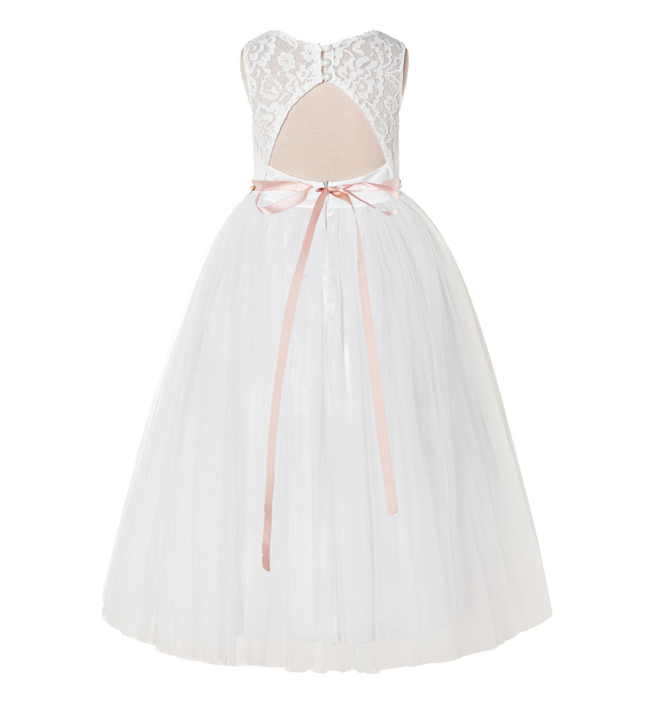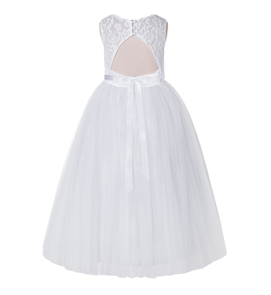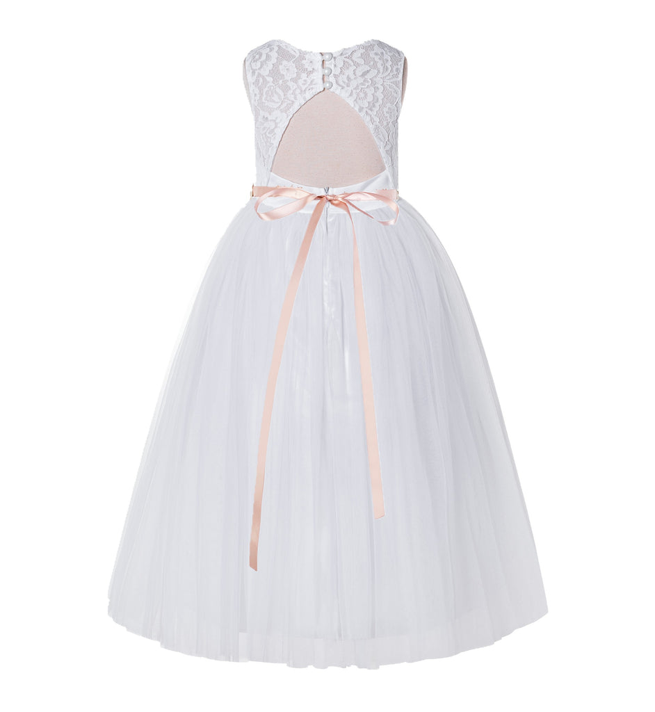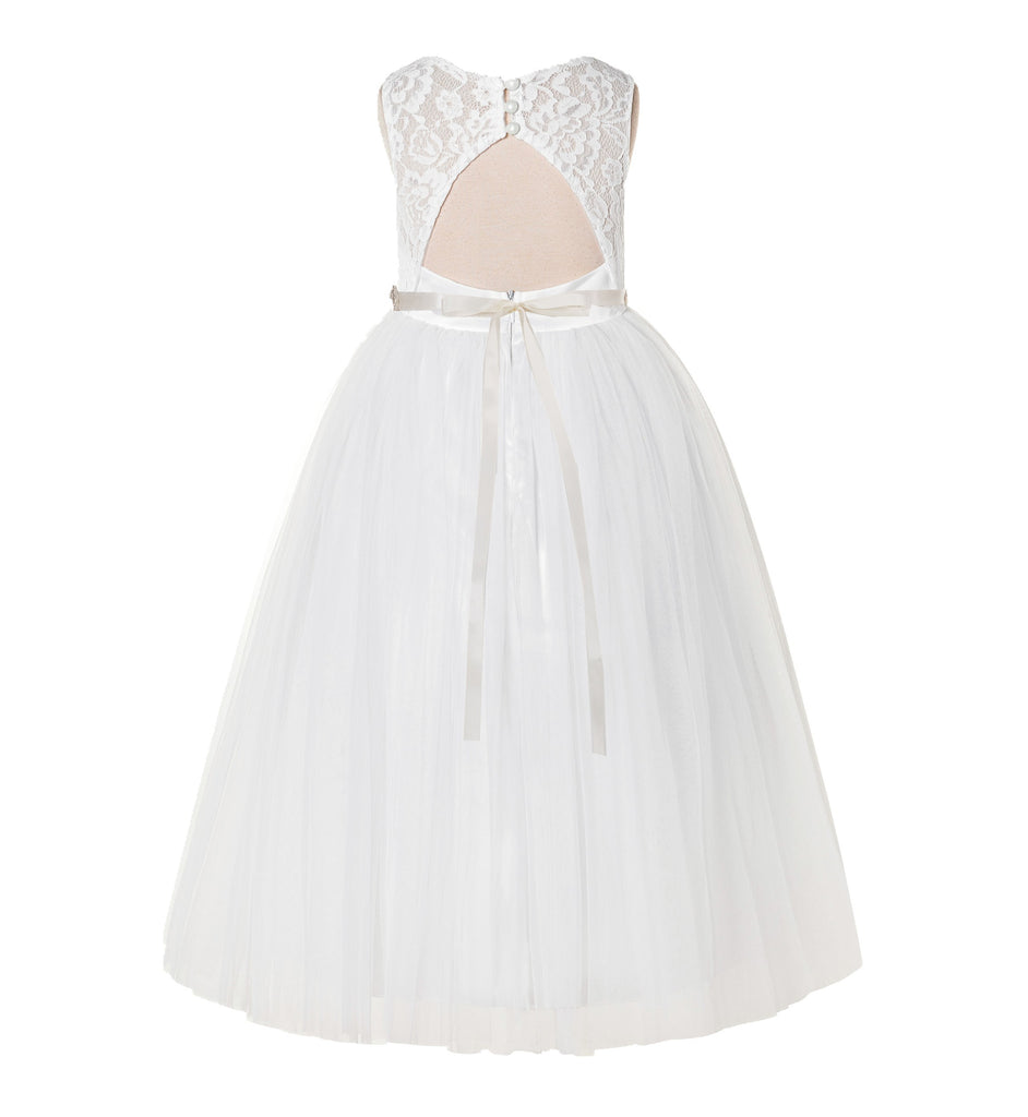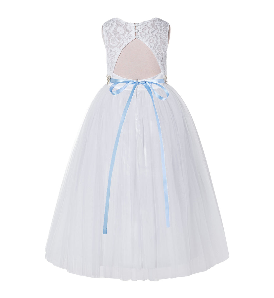 Illusion Lace Tulle Keyhole Back Flower Girl Dress with Rhinestone Sash Junior Bridesmaid 178R2
