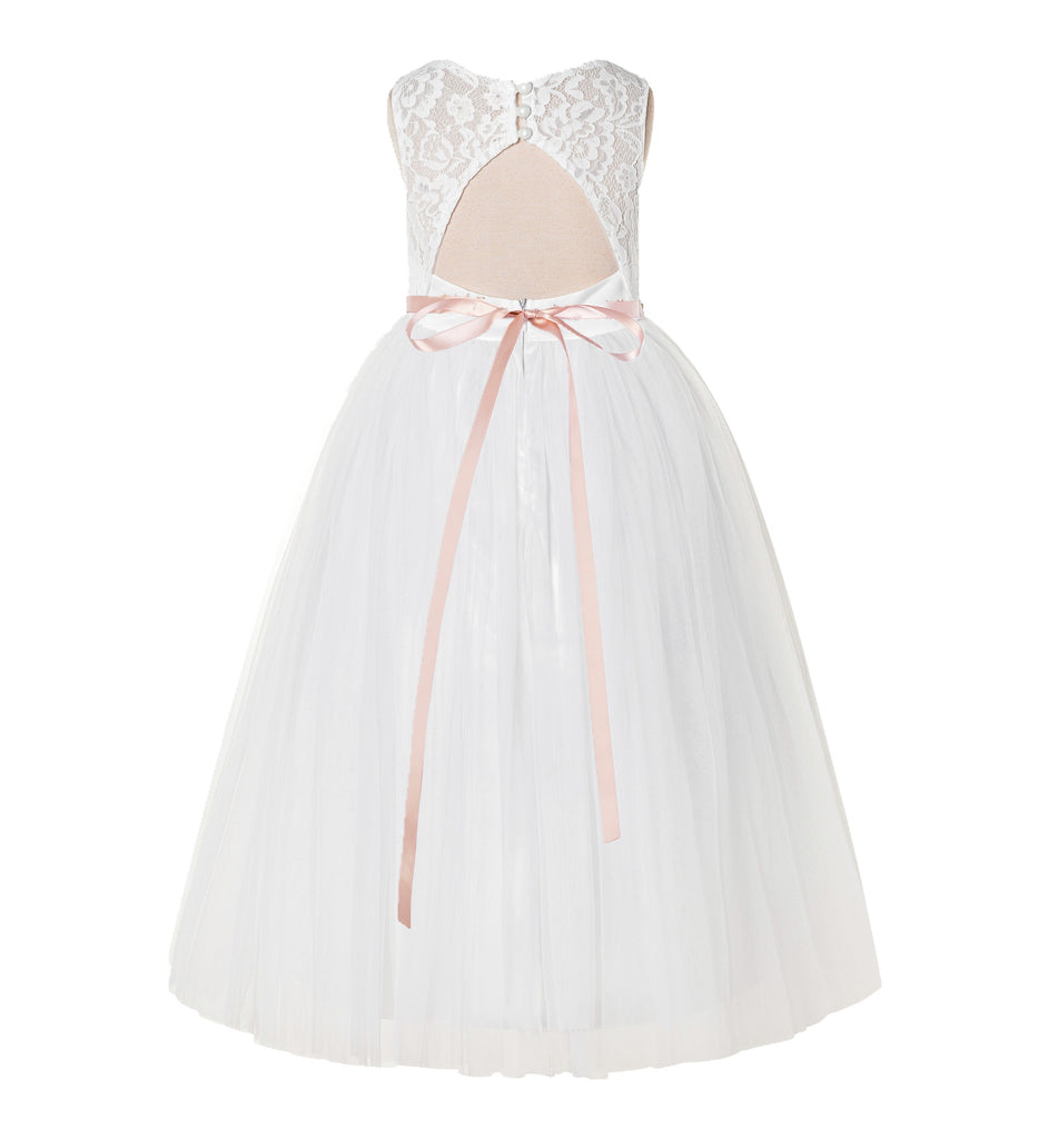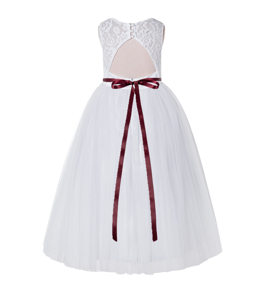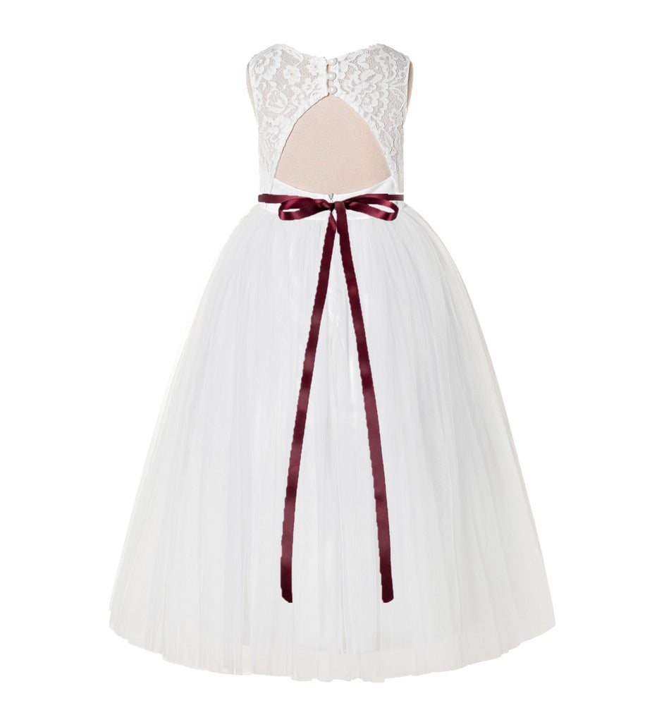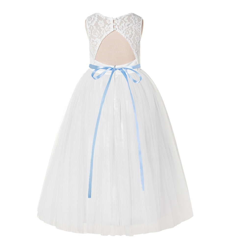 Open Back A-Line Lace Tulle Flower Girl Dress with Rhinestone Beaded Sash for Dance Recital 178R7