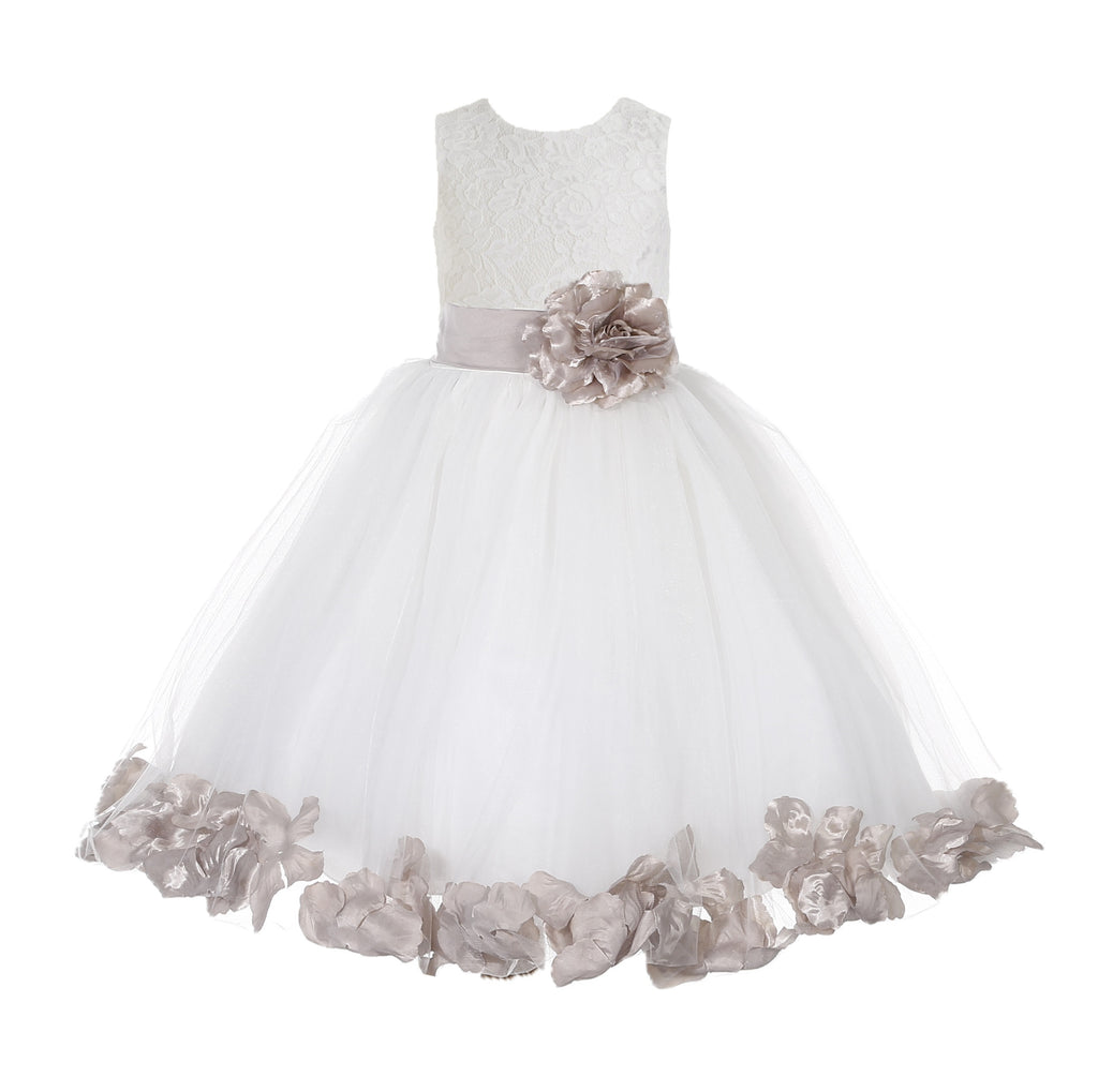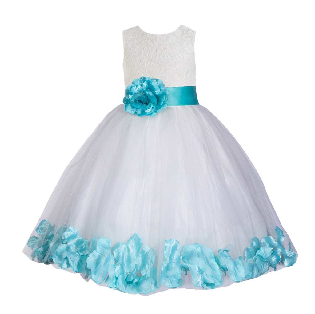 White Floral Lace Heart Cutout Rose Petals Flower Girl Dress Junior Bridesmaid Special Event 185T(4)
