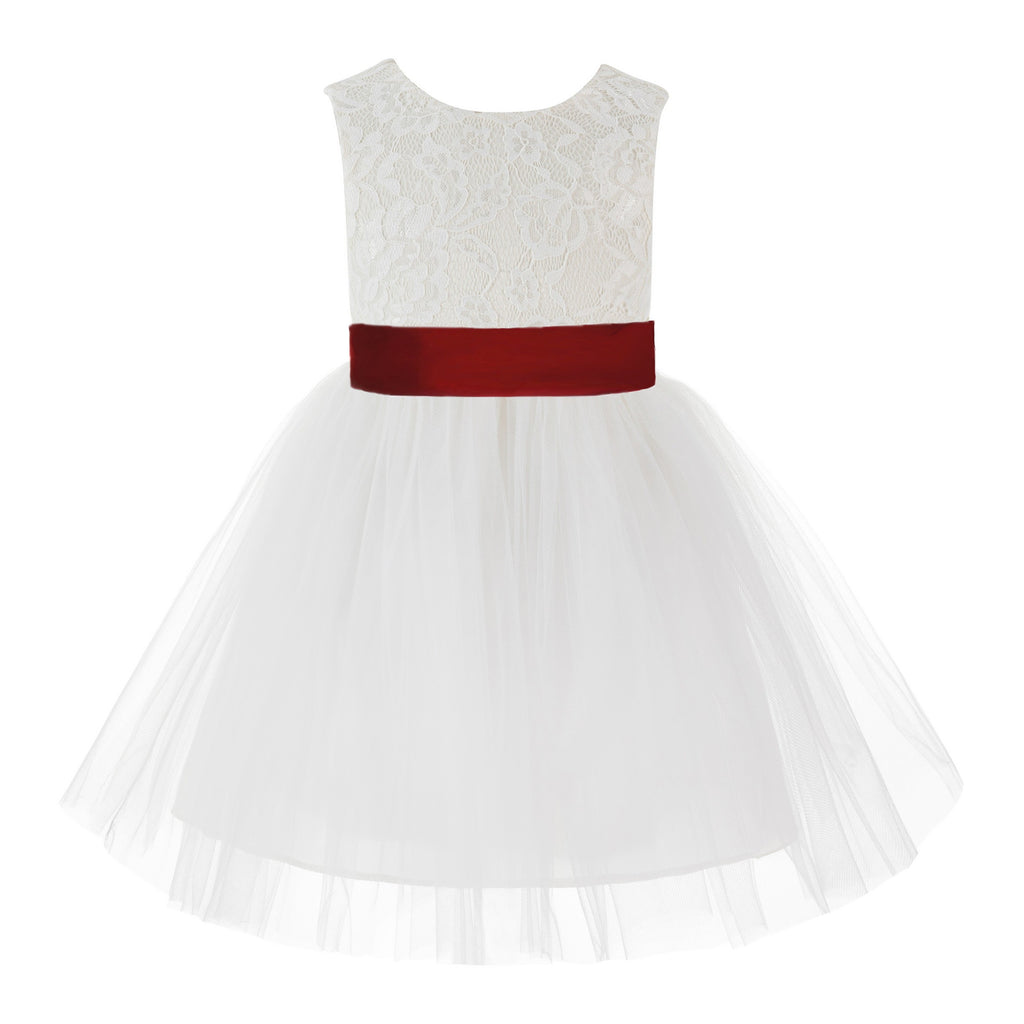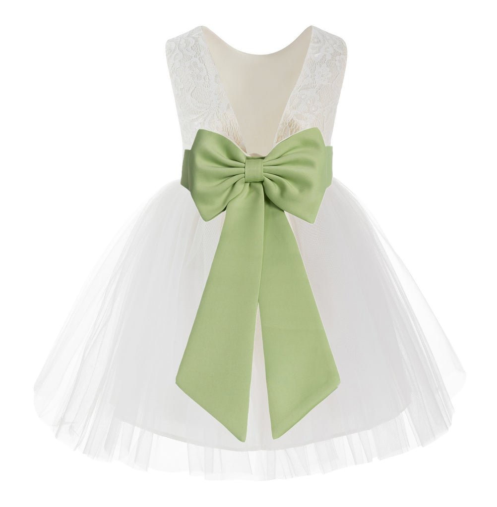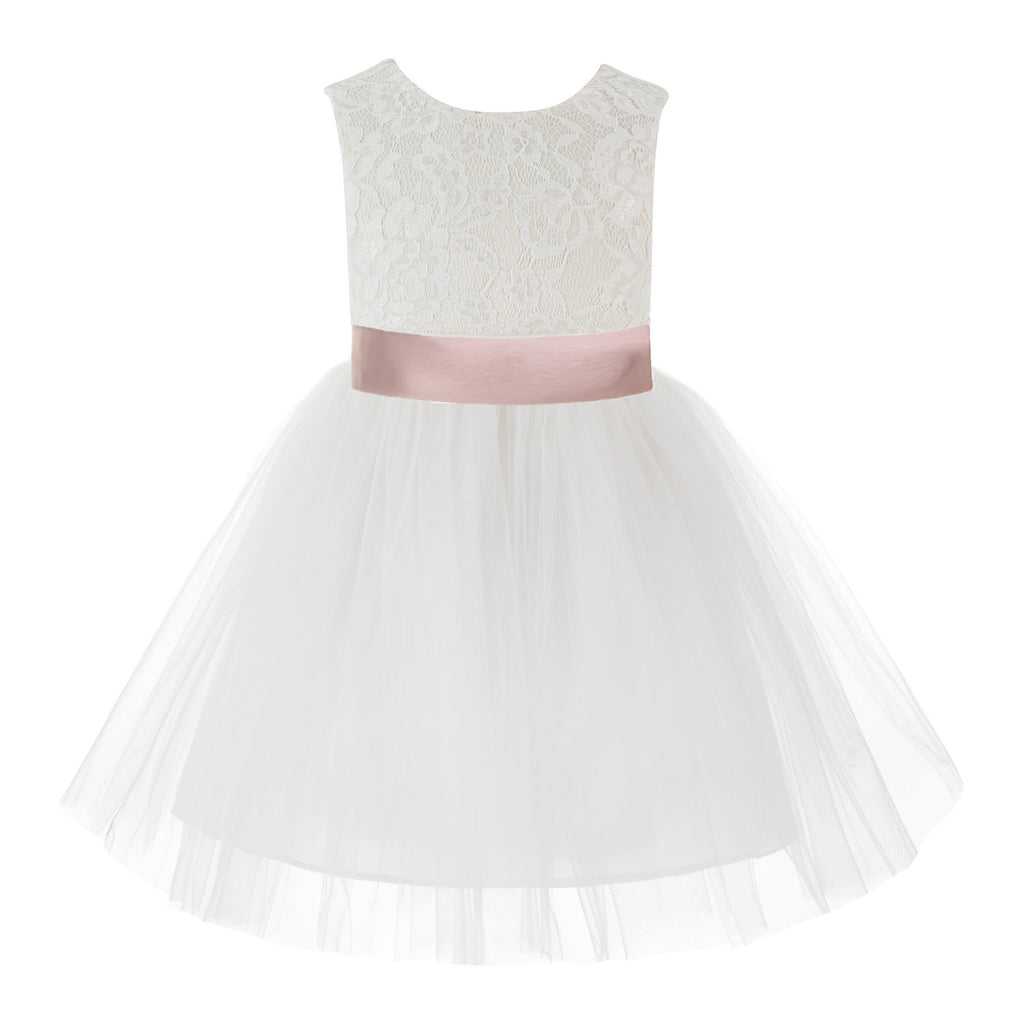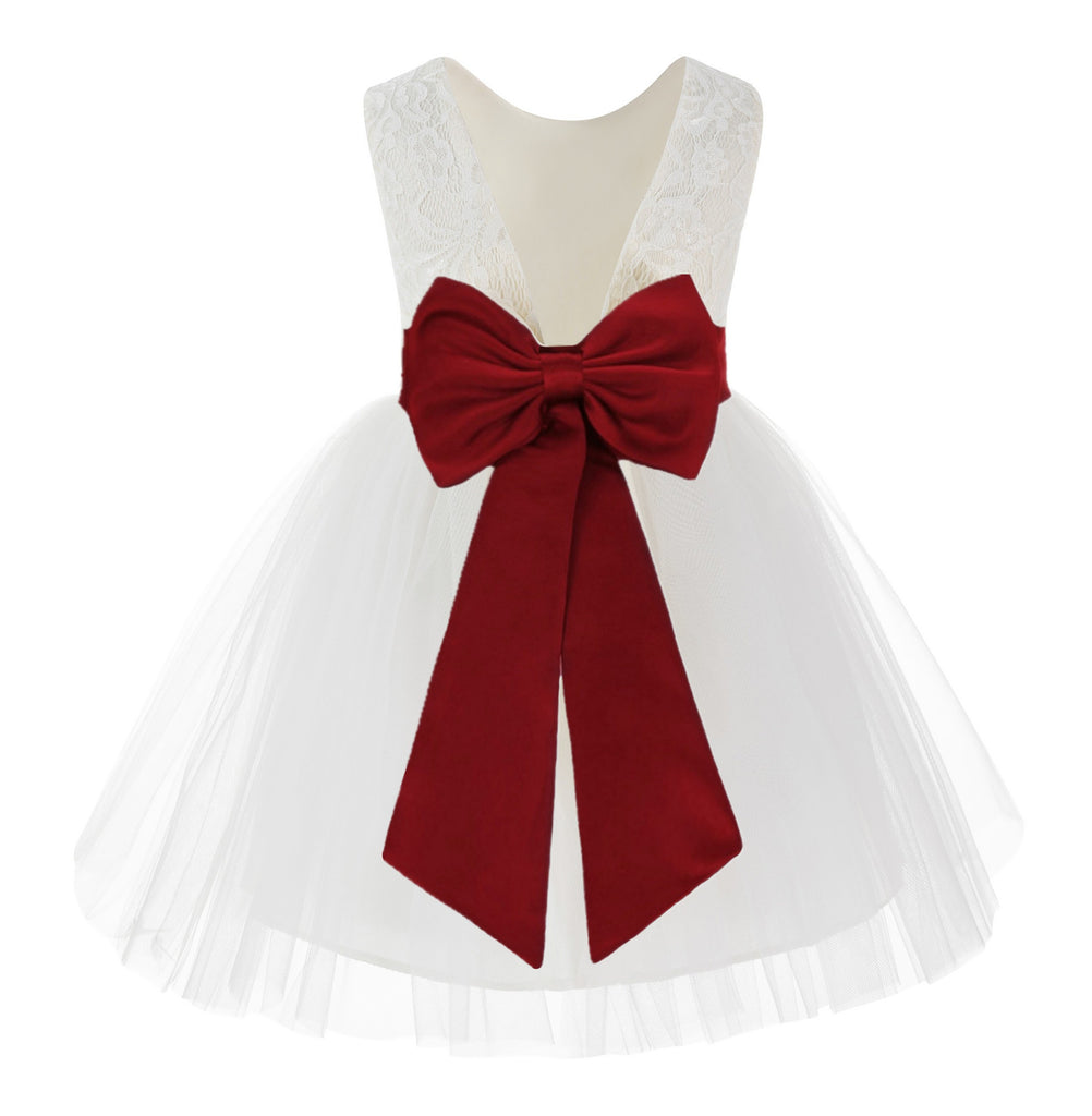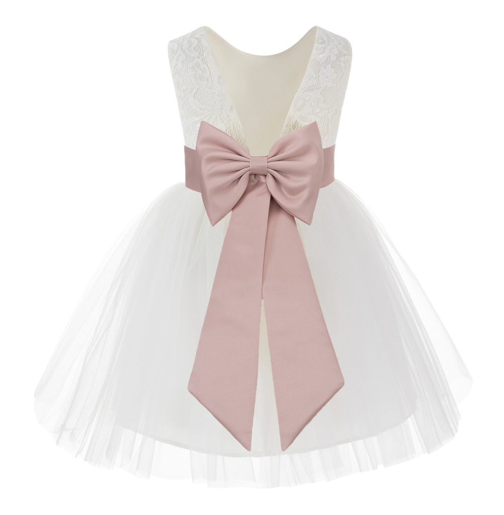 Knee Length Backless Ivory Lace Flower Girl Dress with Tiebow Dance Recital for Toddlers 206T(4)