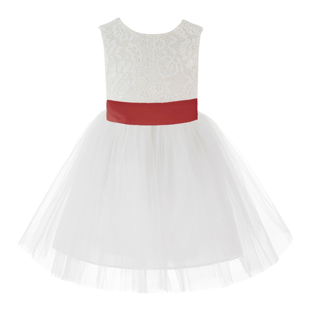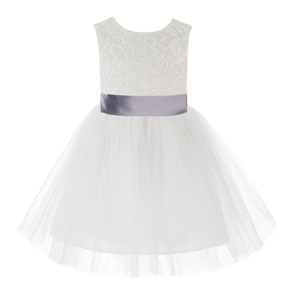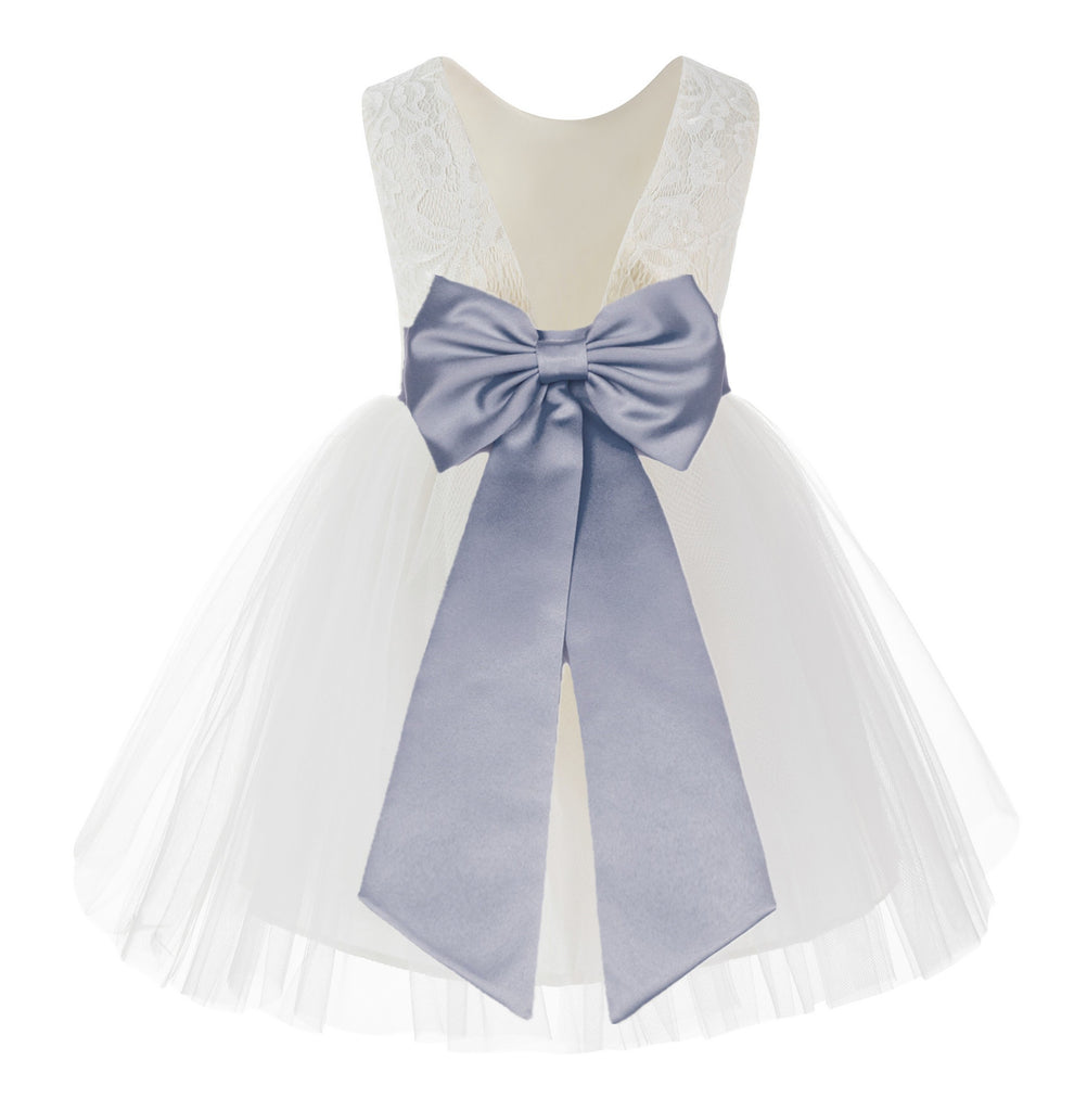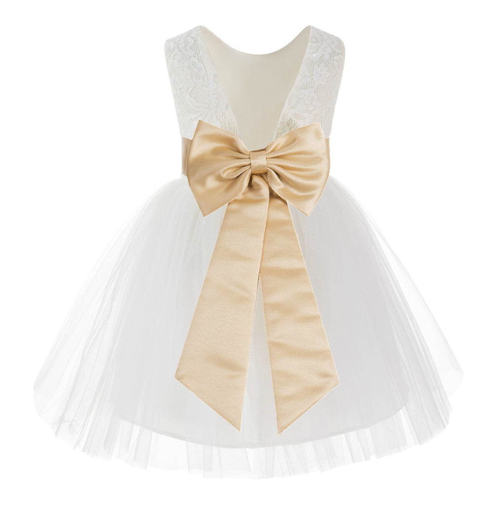Knee Length Backless Ivory Lace Flower Girl Dress with Tiebow Dance Recital for Toddlers 206T(6)