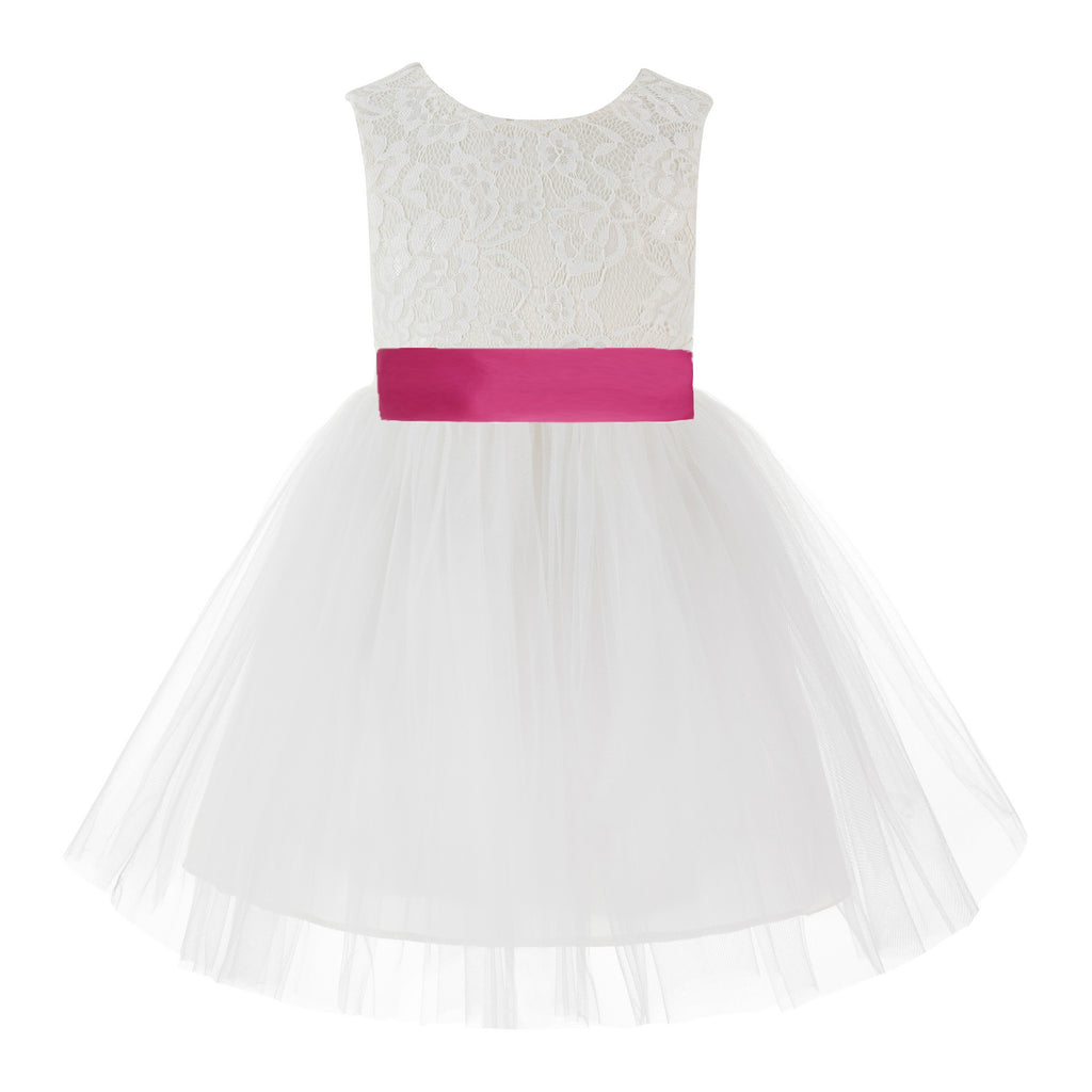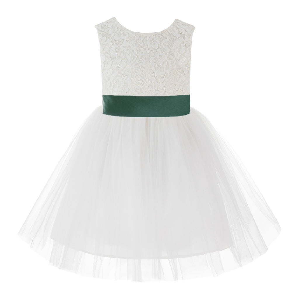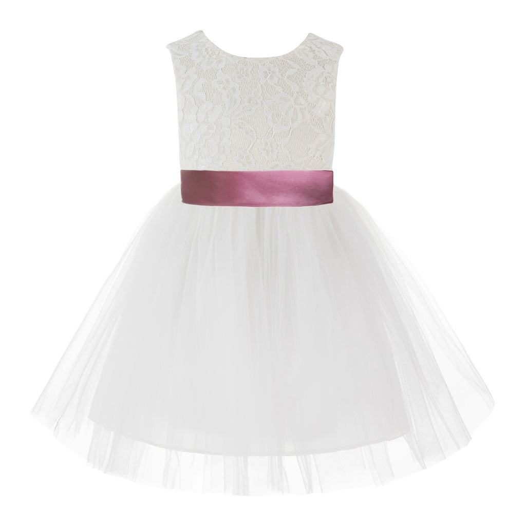 Knee Length Backless Ivory Lace Flower Girl Dress with Tiebow Dance Recital for Toddlers 206T(6)