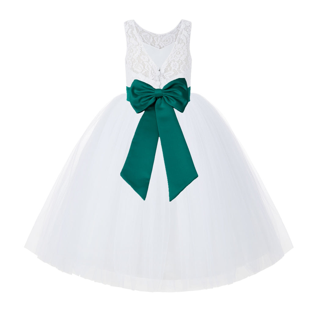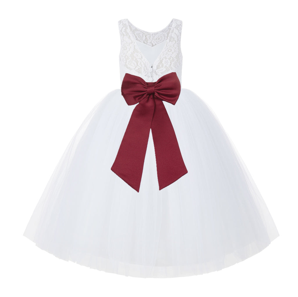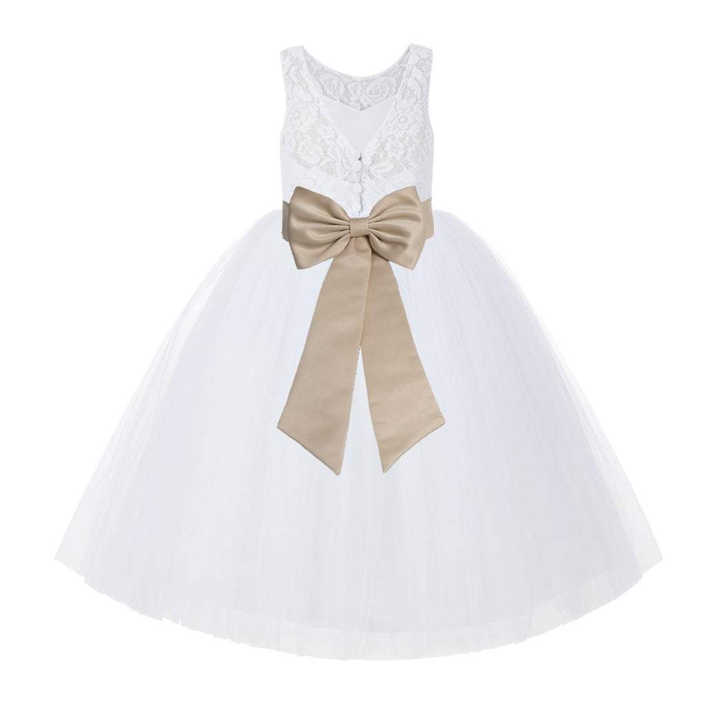 V-Back White Lace Tutu Flower Girl Dress with Tiebow for Wedding Pageant Gown Toddlers 212noFT(4)