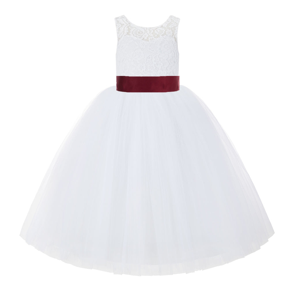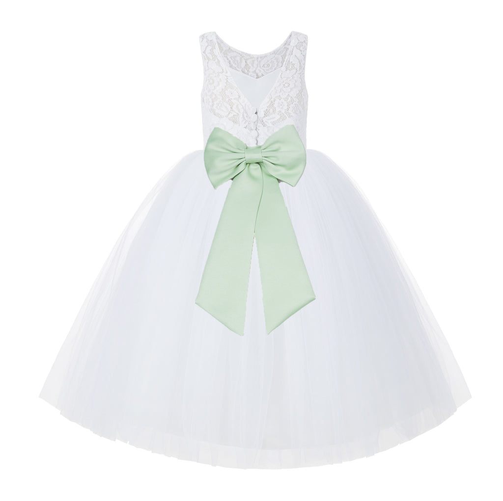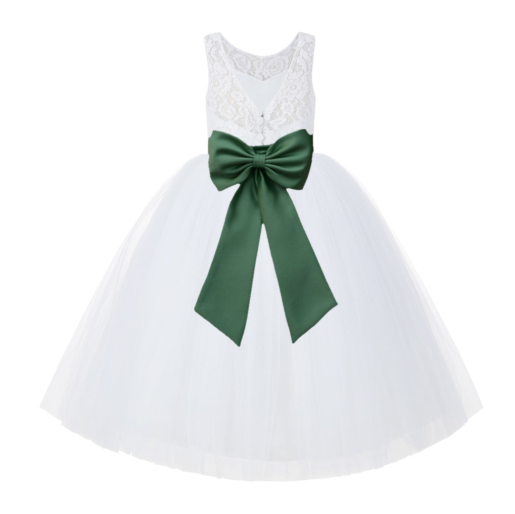 V-Back White Lace Tutu Flower Girl Dress with Tiebow for Wedding Pageant Gown Toddlers 212noFT(4)