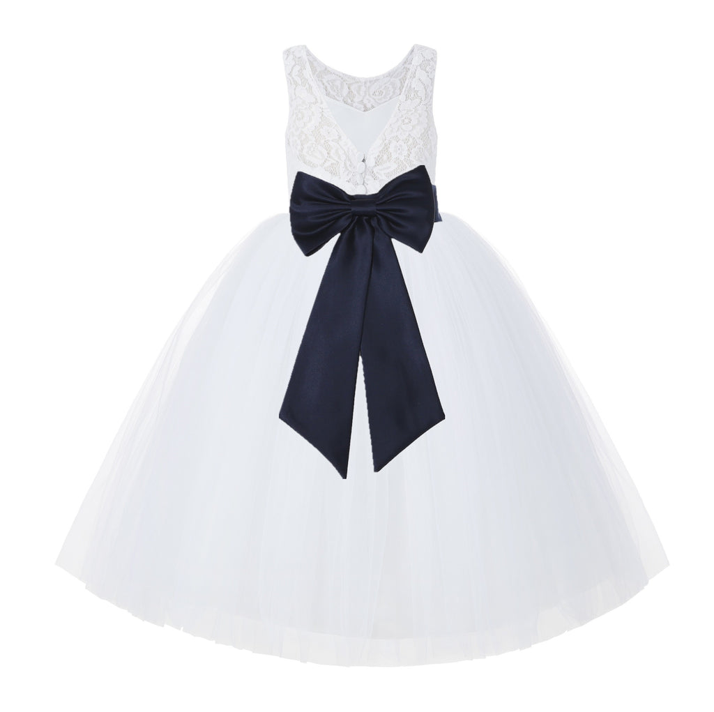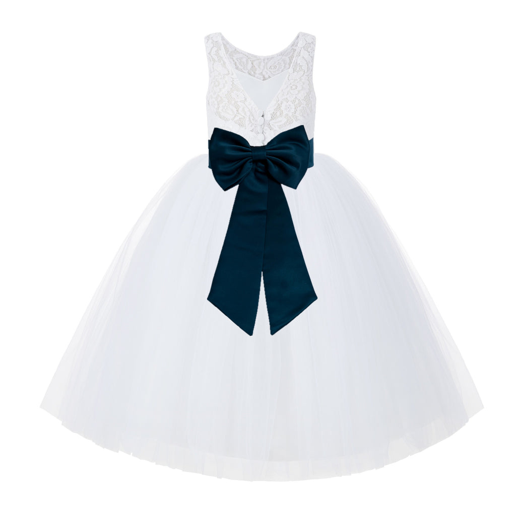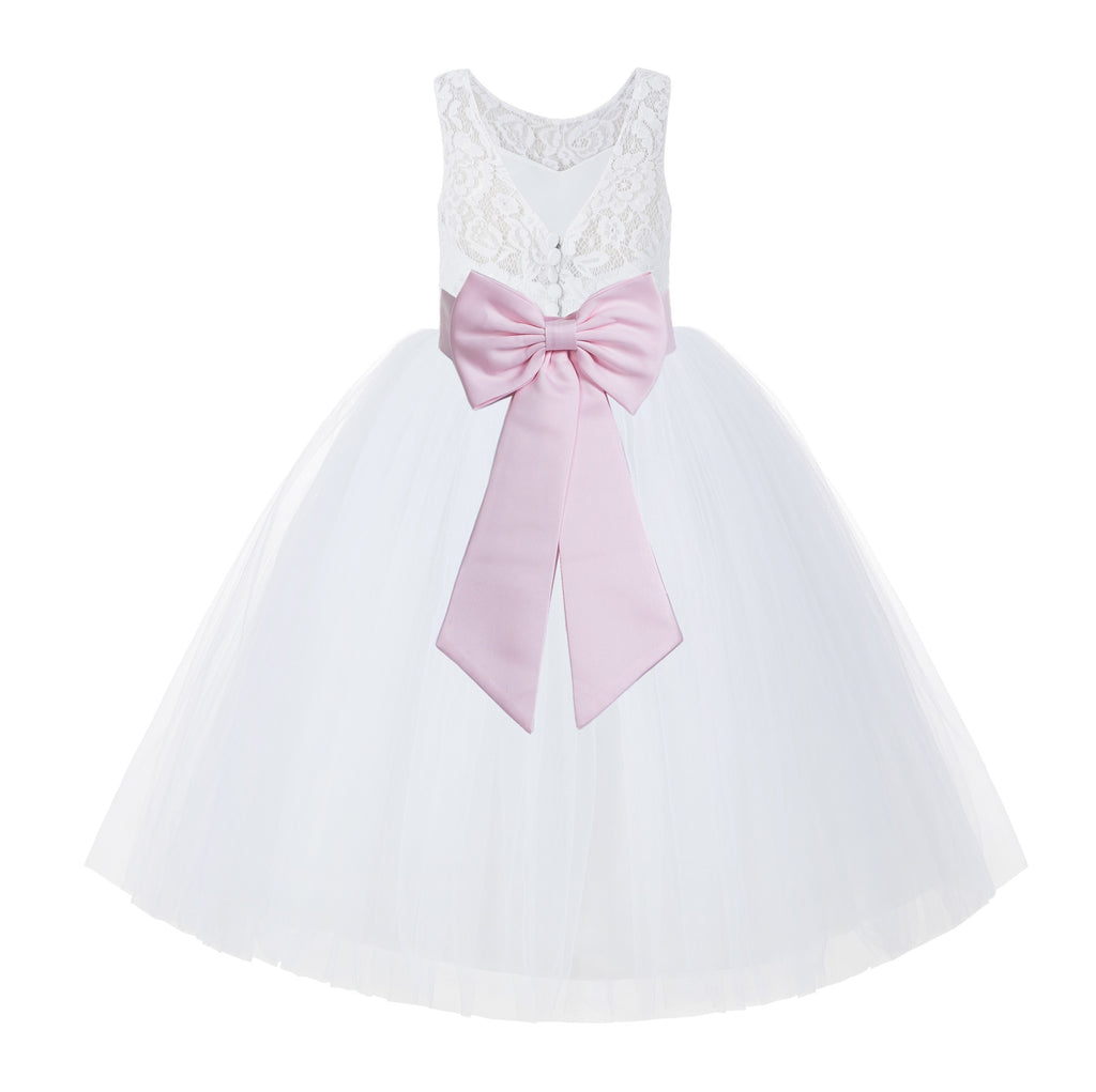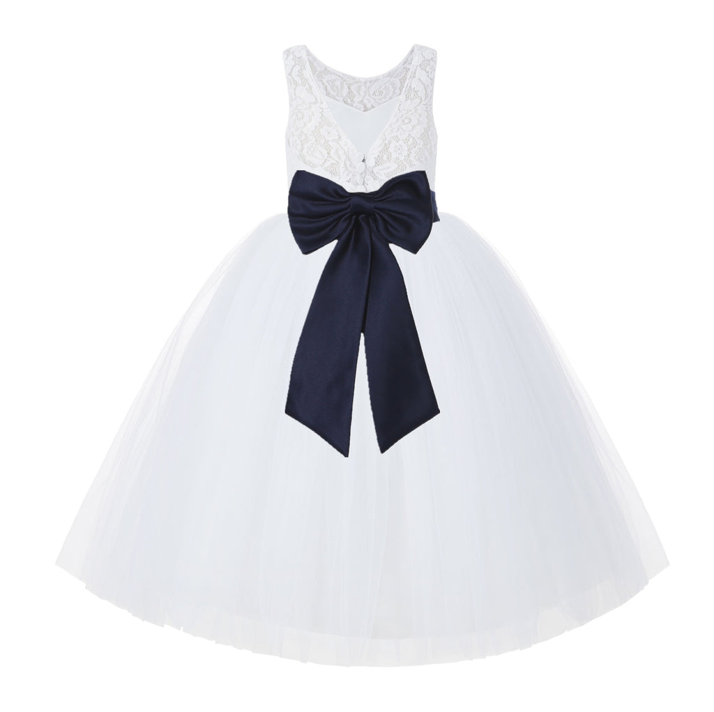 V-Back White Lace Tutu Flower Girl Dress with Tiebow for Wedding Pageant Gown Toddlers 212noFT(1)