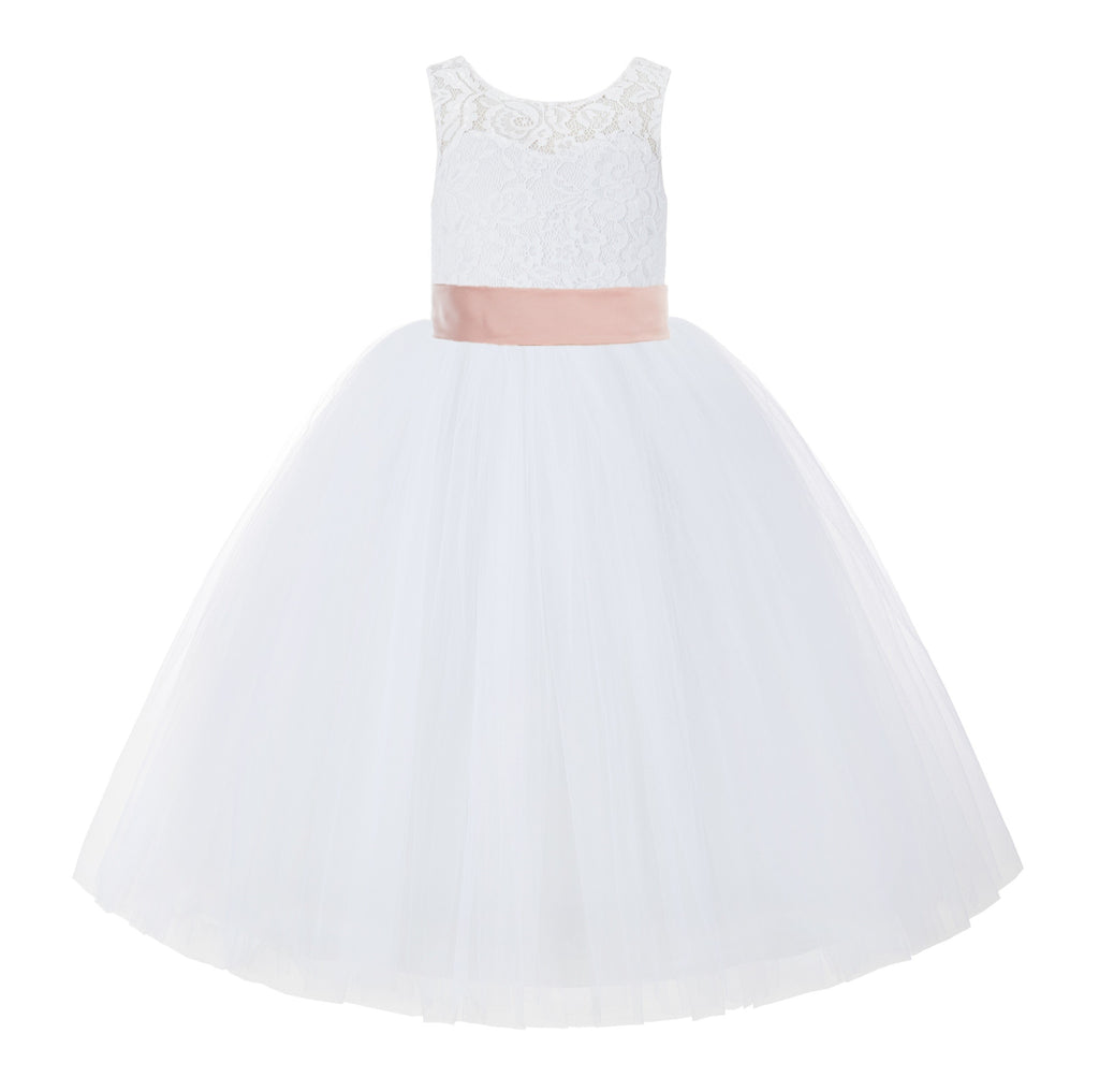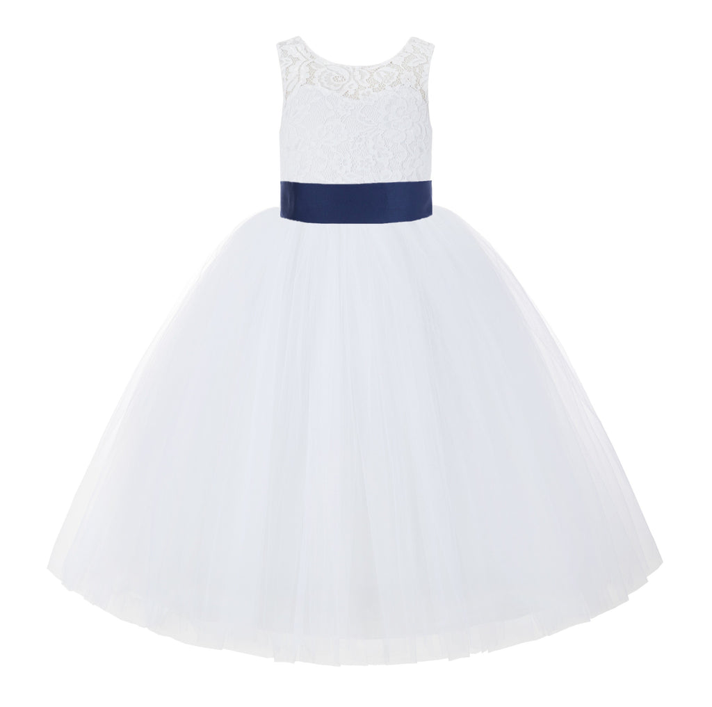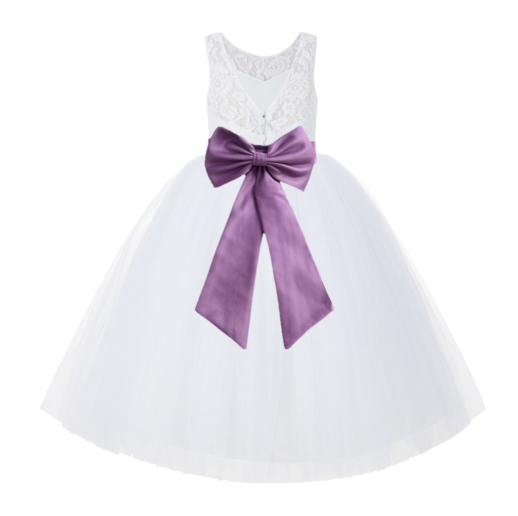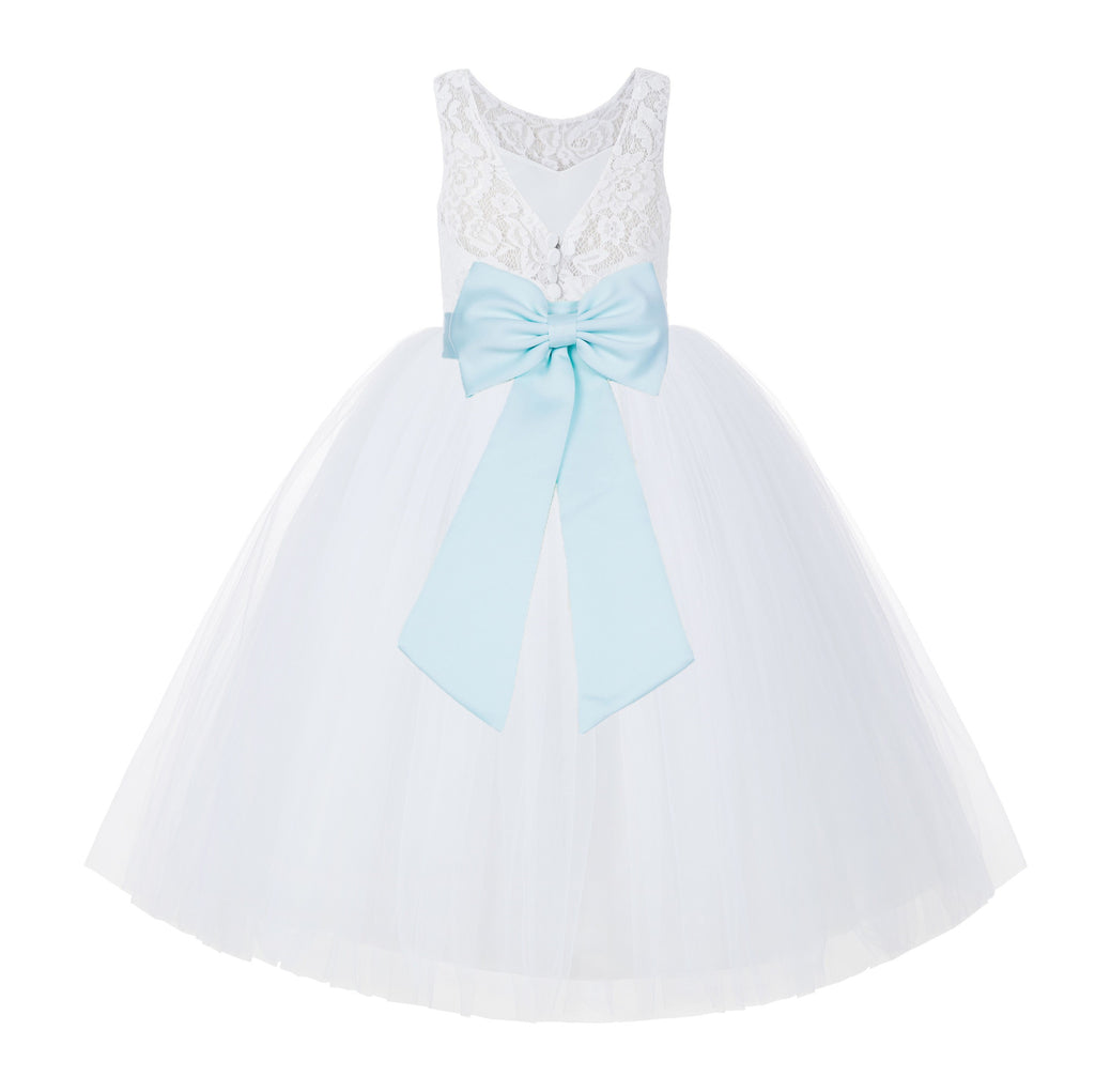 V-Back White Lace Tutu Flower Girl Dress with Tiebow for Wedding Pageant Gown Toddlers 212noFT(1)