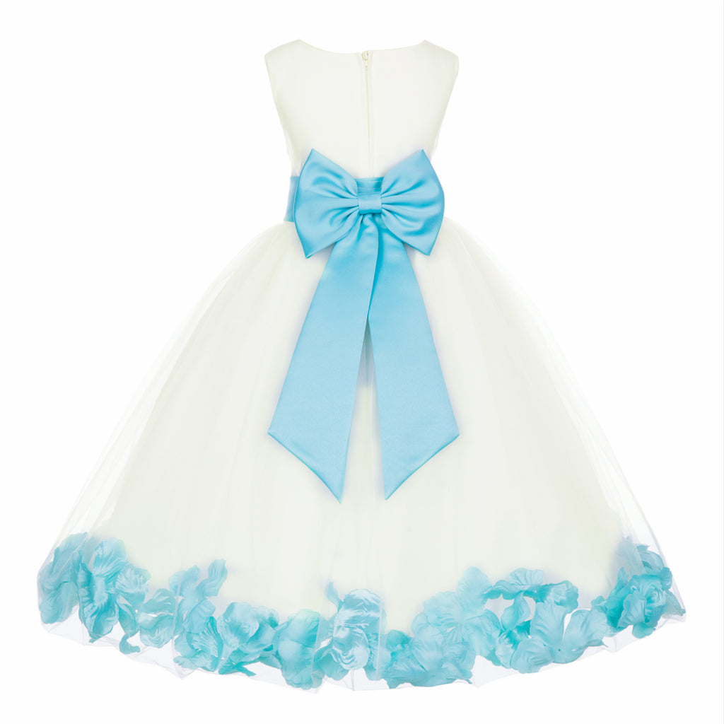 Ivory Elegant Wedding Pageant Special Events Petals Flower Girl Dress with Bow Tie Sash 302T(5)