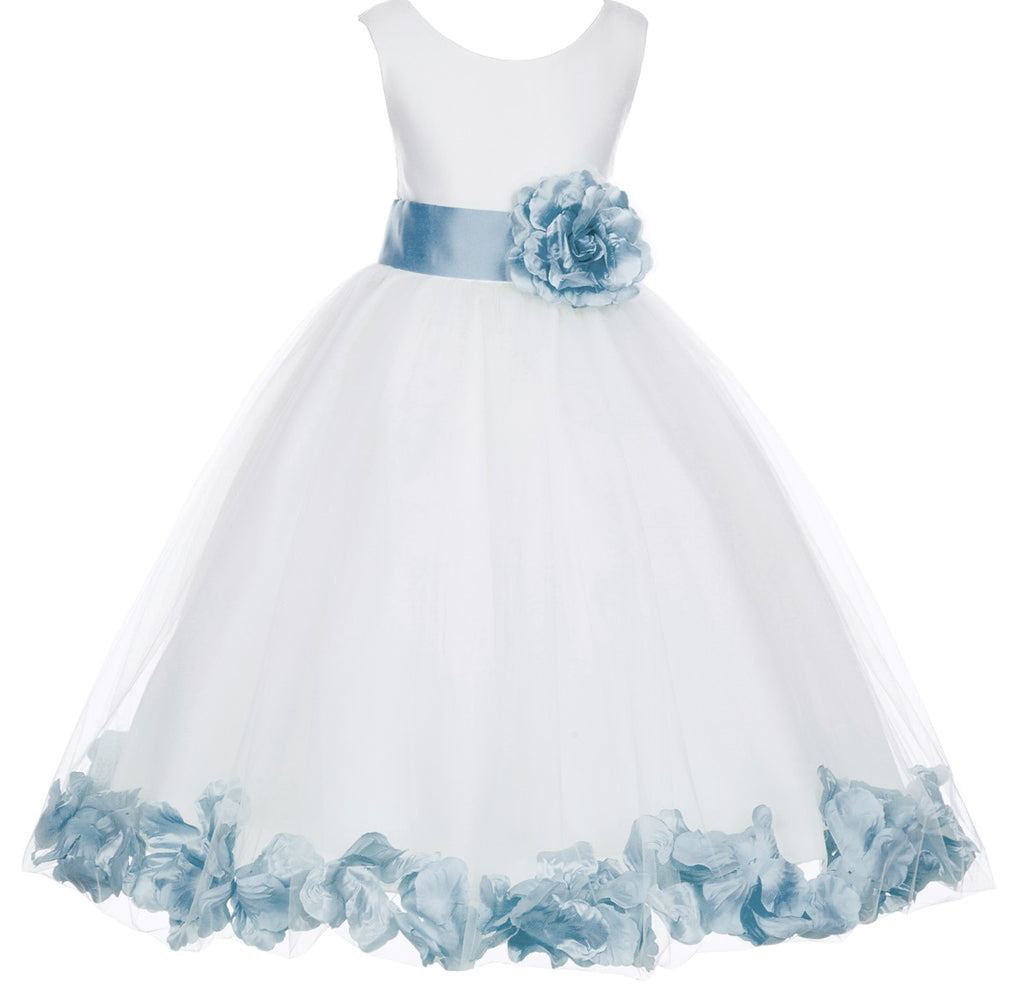 • Ivory Tulle Floral Petals Flower Girl Dress Special Occasions Junior Pageant Wedding Holiday 302S(4)