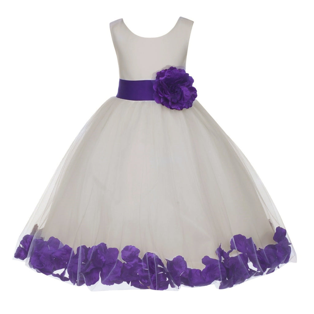 Ivory Tulle Floral Petals Flower Girl Dress Special Occasions Junior Pageant Wedding Holiday 302S(4)