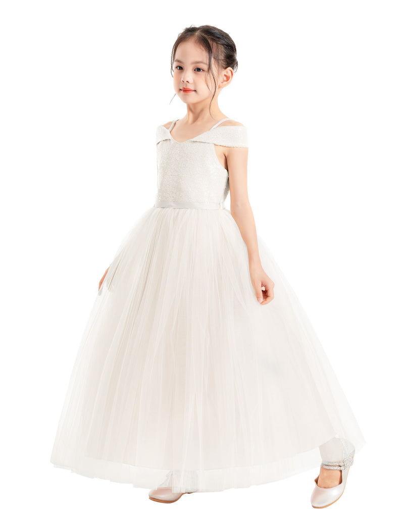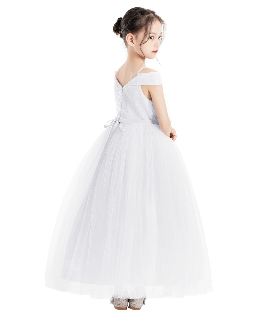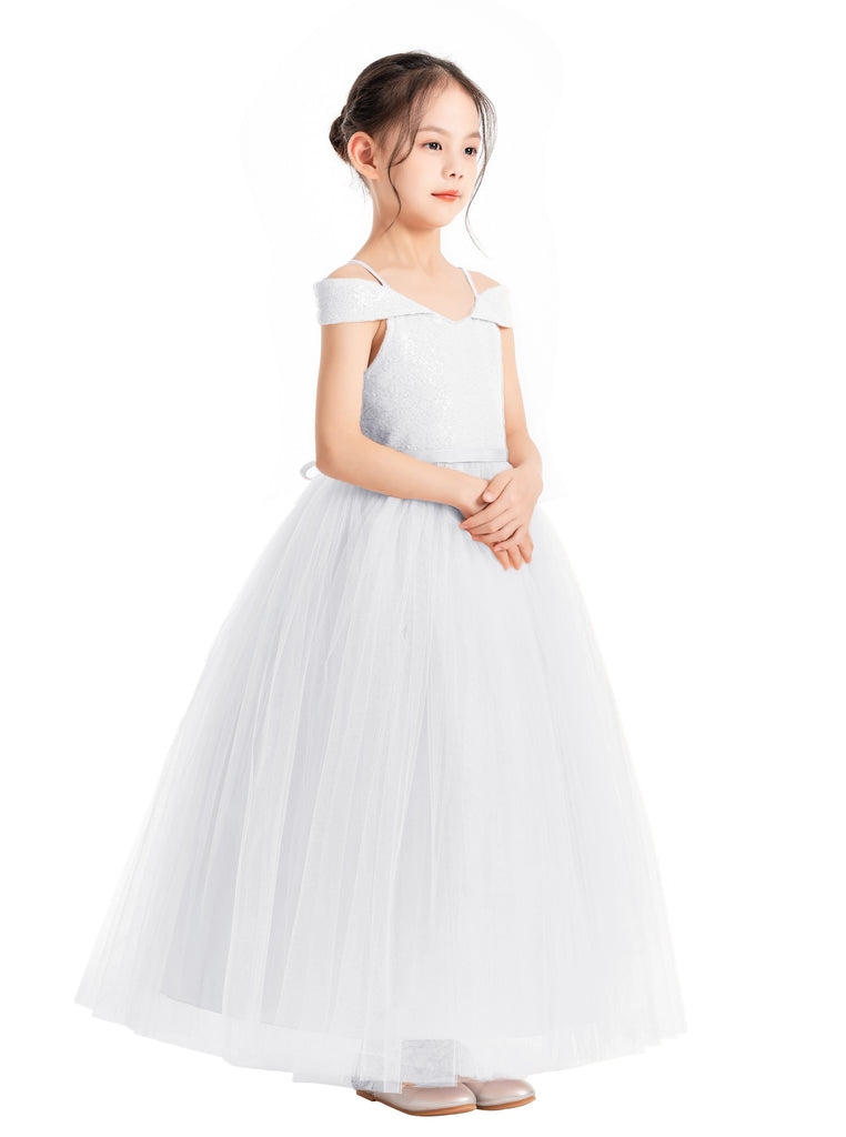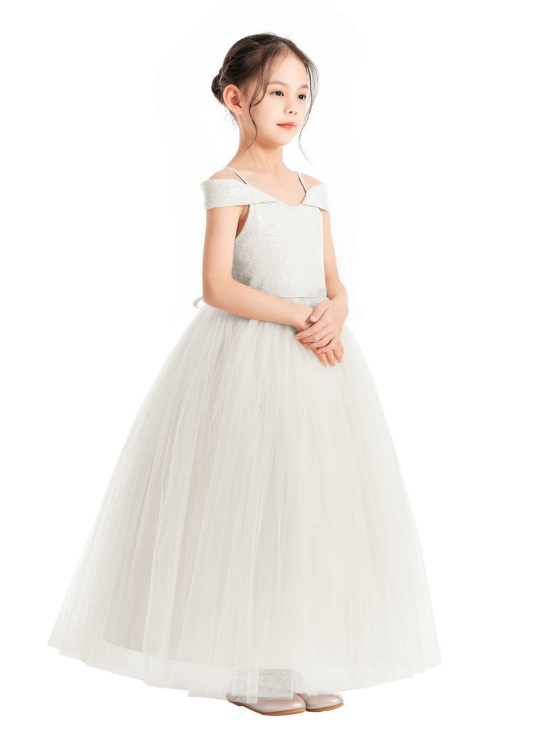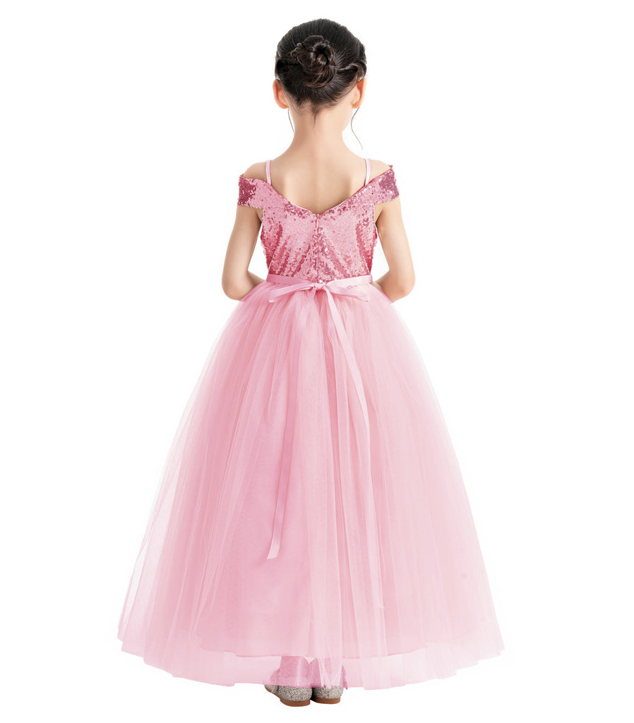 Off The Shoulder Sequin Flower Girl Dress Junior Pageant Gown Photoshoot Dresses for Toddlers 322