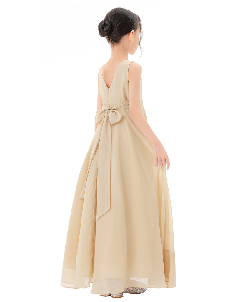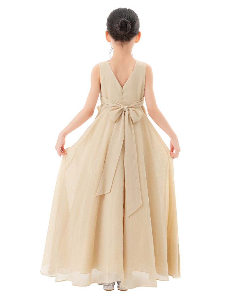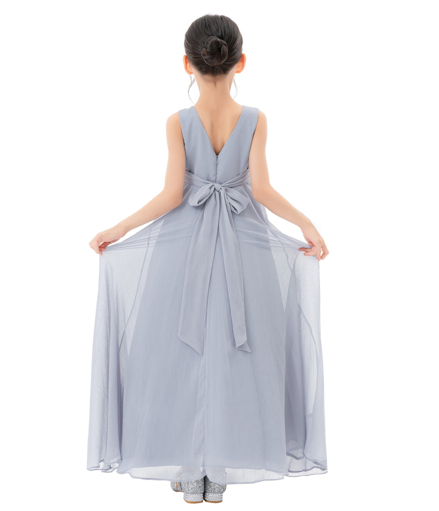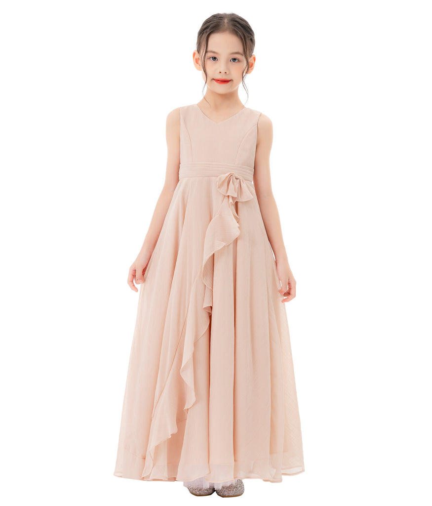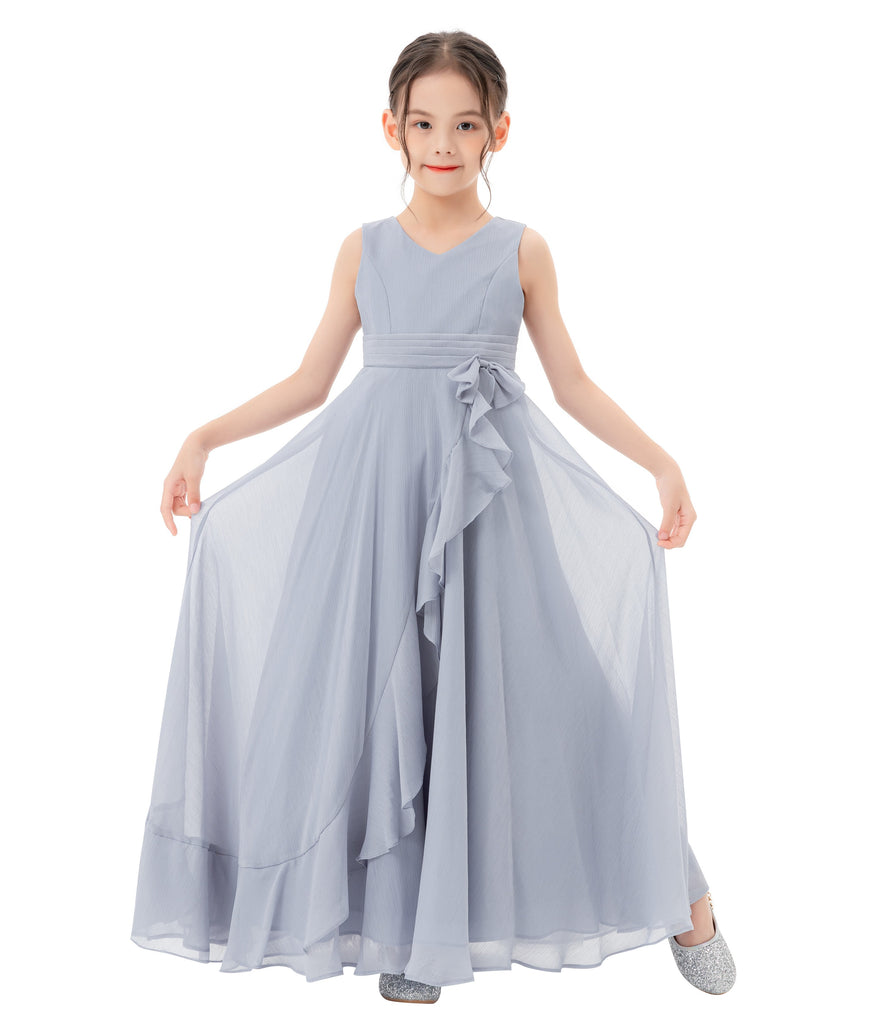 - This gorgeous flower girl dress made out of a chiffon bodice with relaxed A-line skirt.