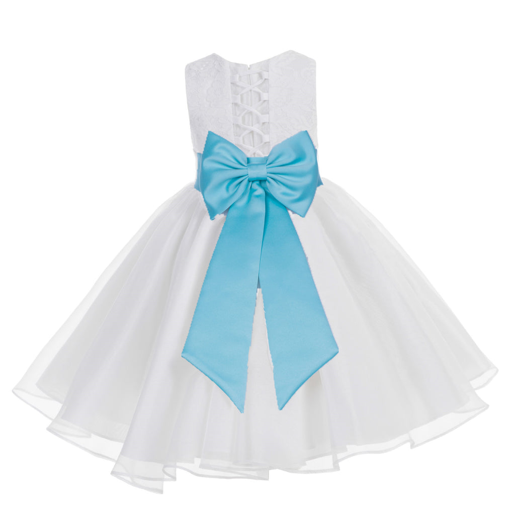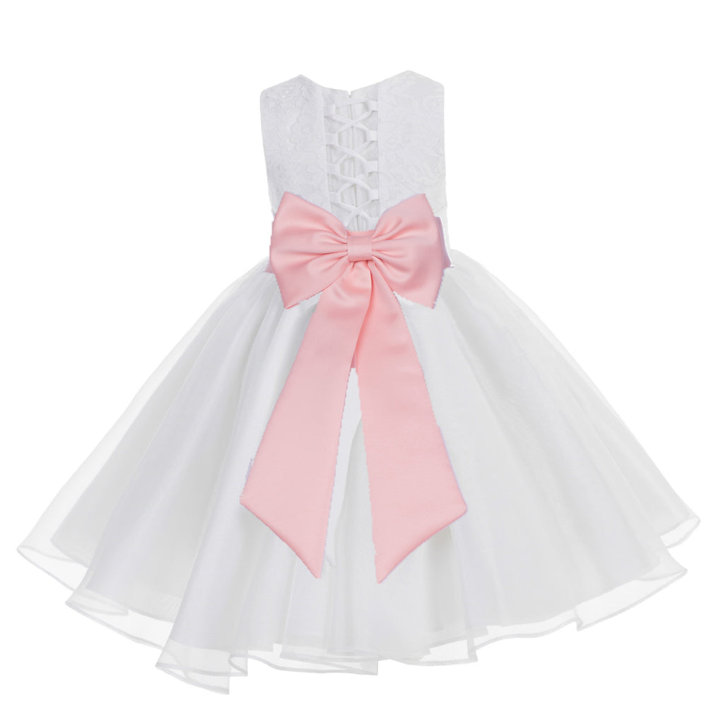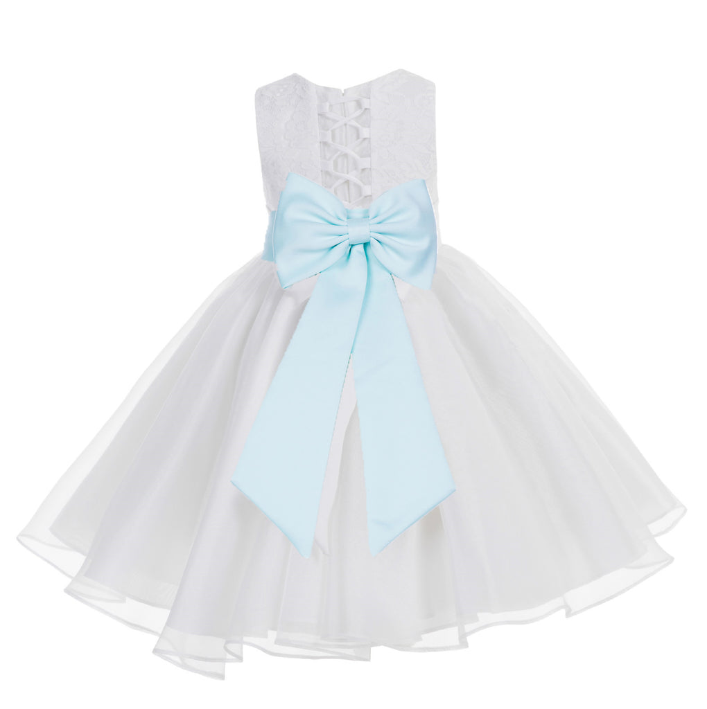 White Lace Organza Flower Girl Dress Elegant Formal Junior Beauty Pageant Communion Baptism 186T(3)
