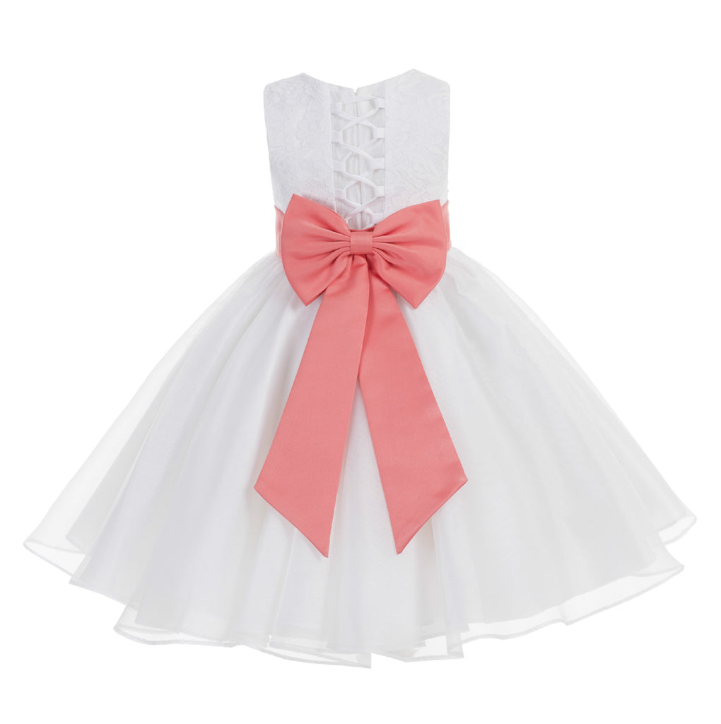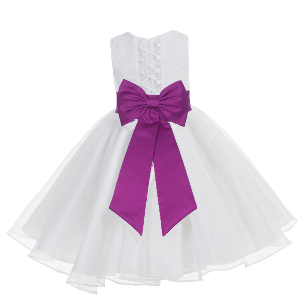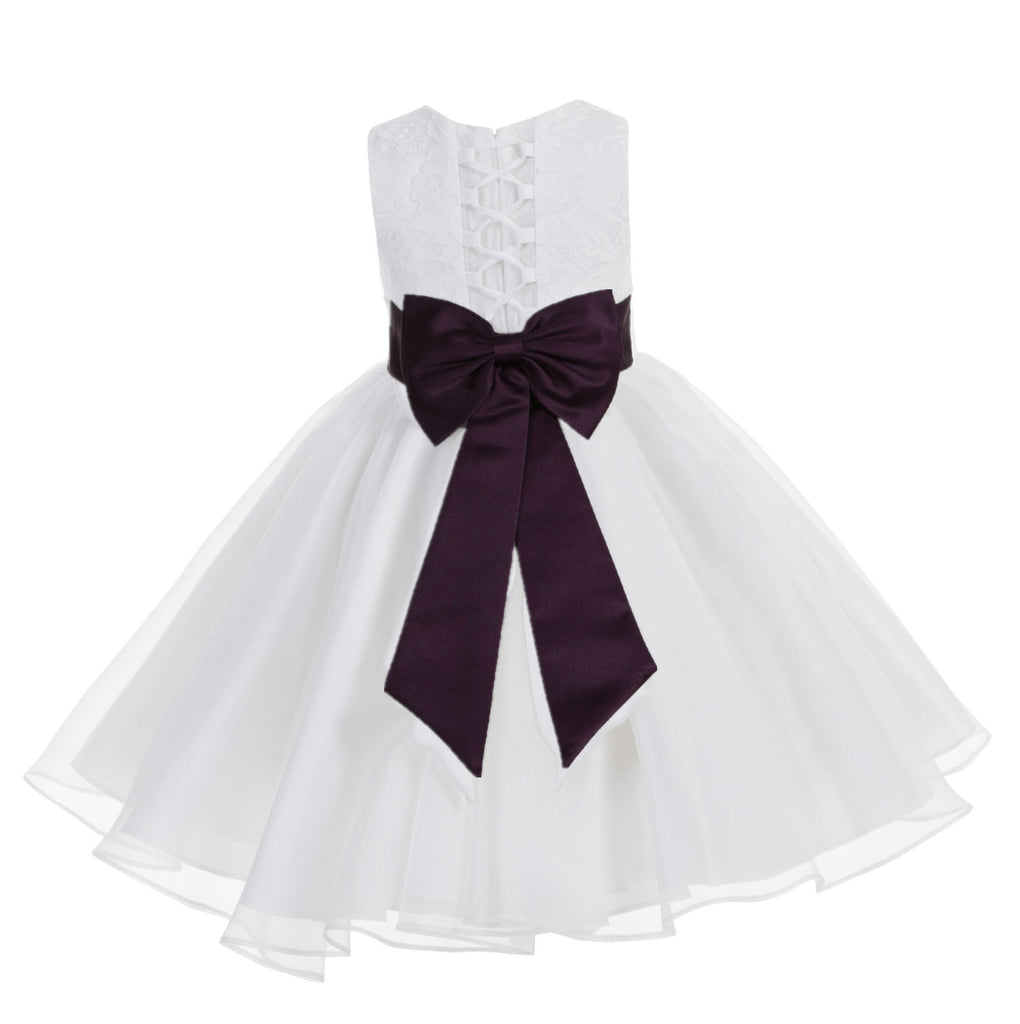 White Lace Organza Flower Girl Dress Elegant Formal Junior Beauty Pageant Communion Baptism 186T(3)