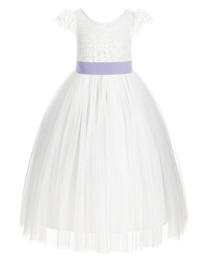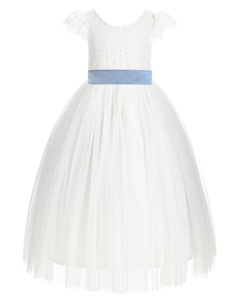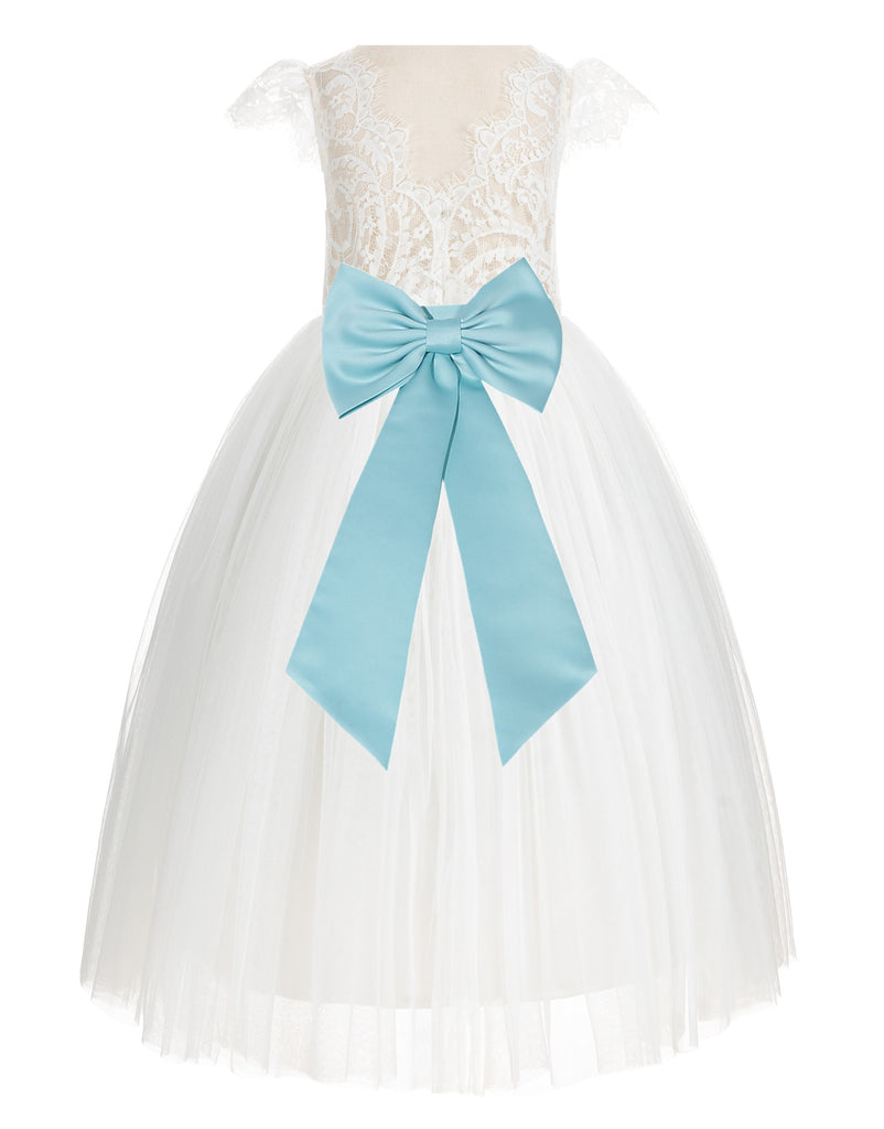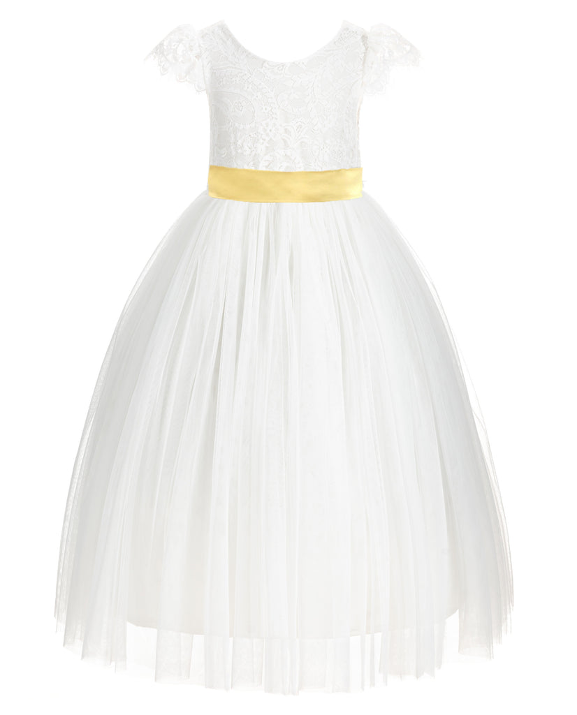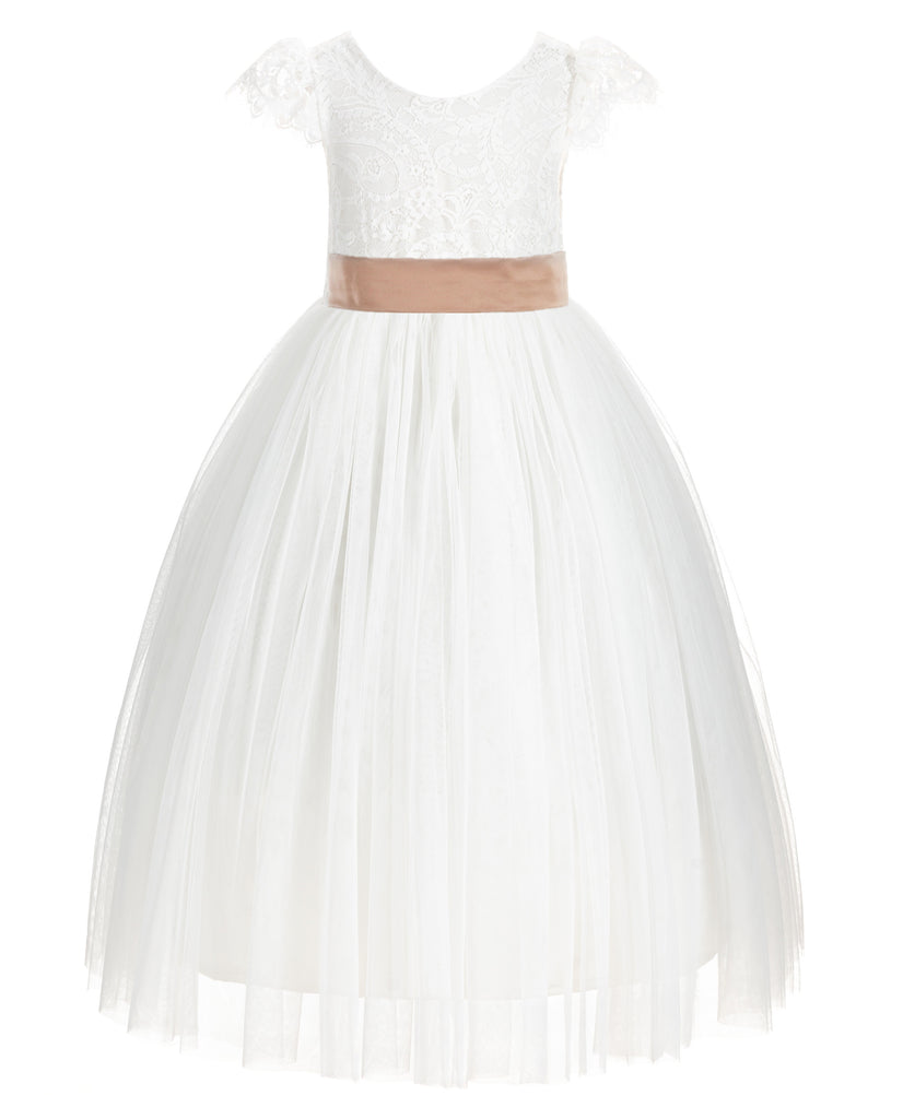 Ivory Cap Sleeves V-Back Lace Flower Girl Dress Special Occasions Junior Bridesmaid Gown 622T(2)