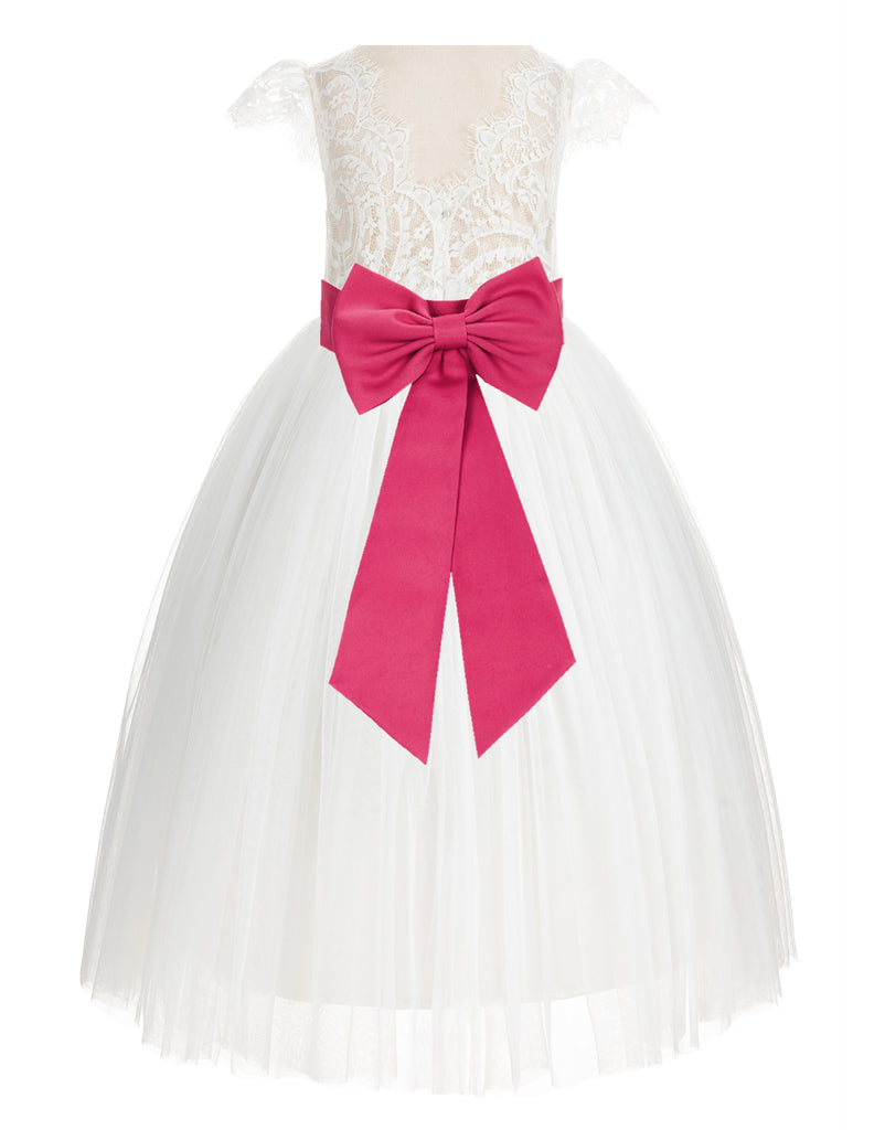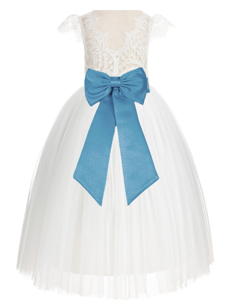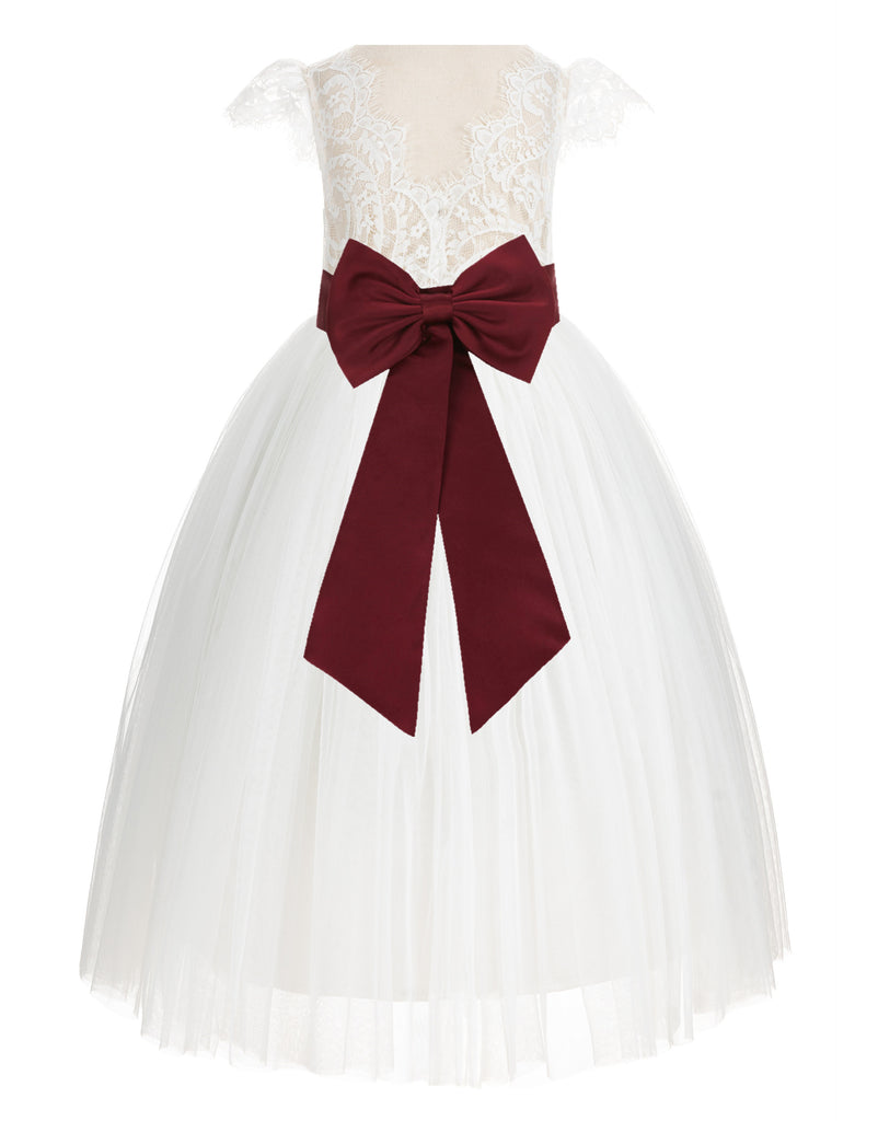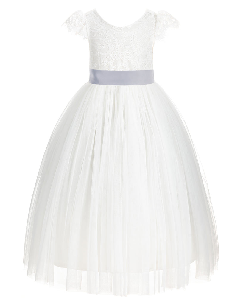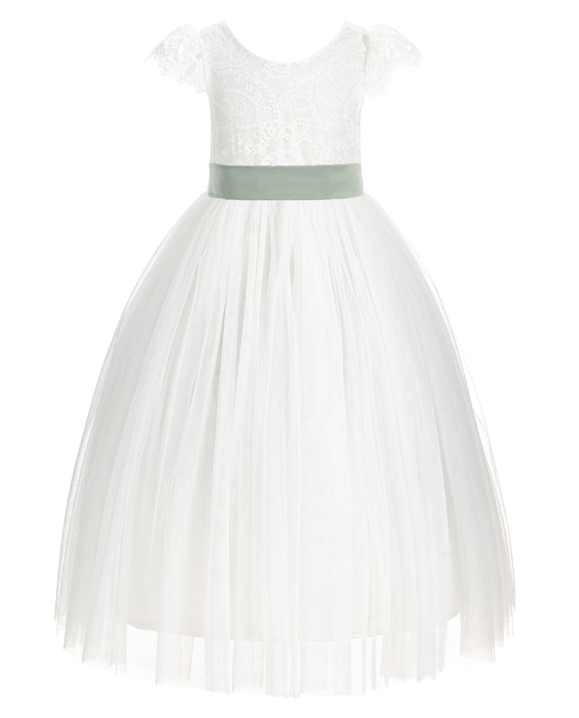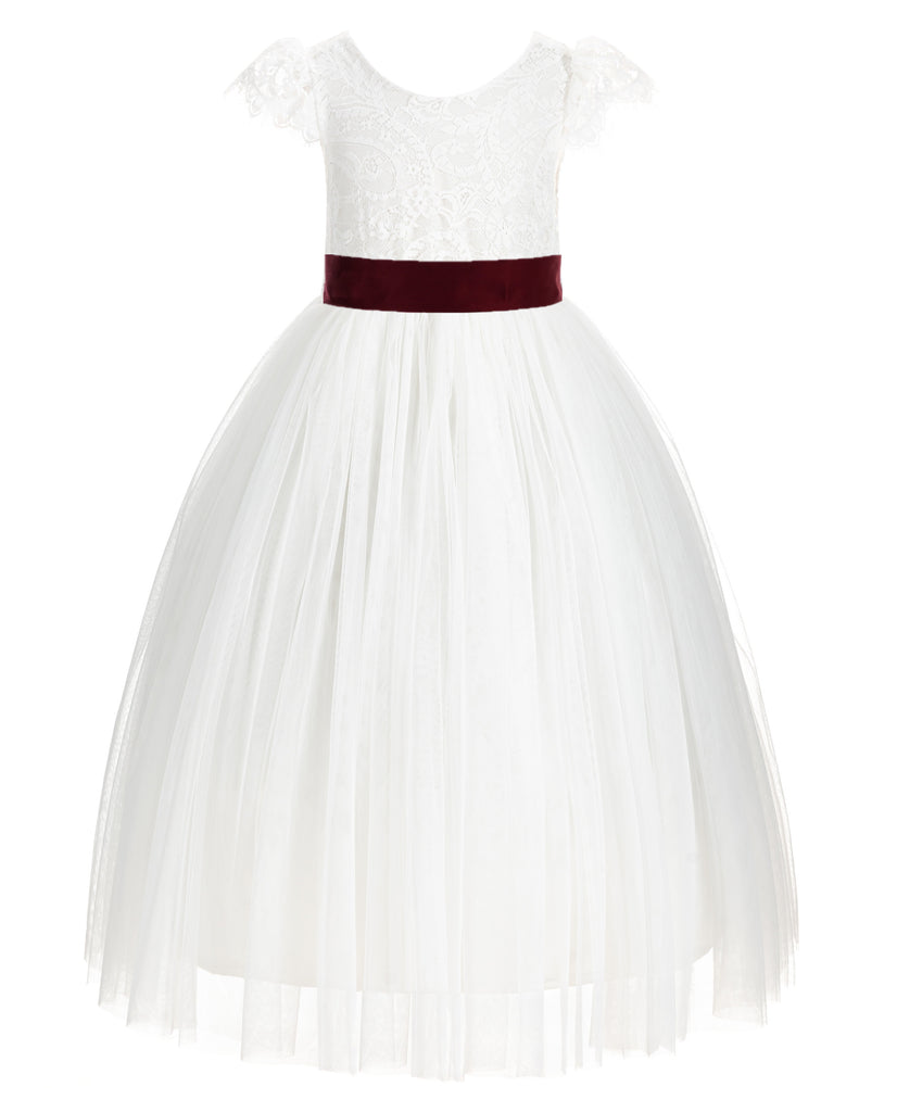 Ivory Cap Sleeves V-Back Lace Flower Girl Dress Special Occasions Junior Bridesmaid Gown 622T(2)