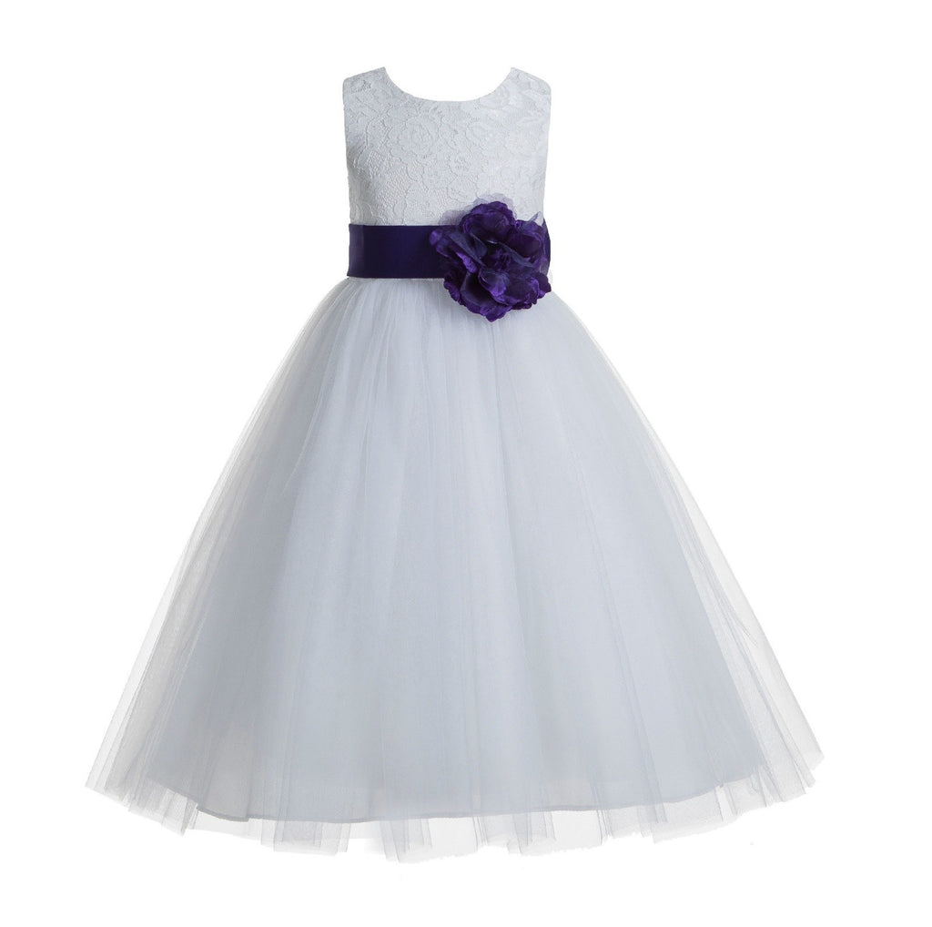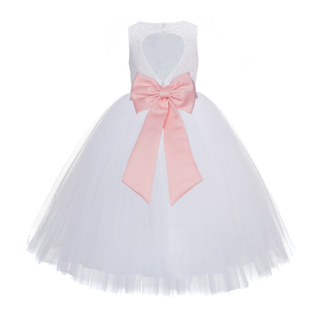 White Floral Lace Heart Cutout Flower Girl Dress Communion Baptism Junior Bridesmaid Dress 172T(5)