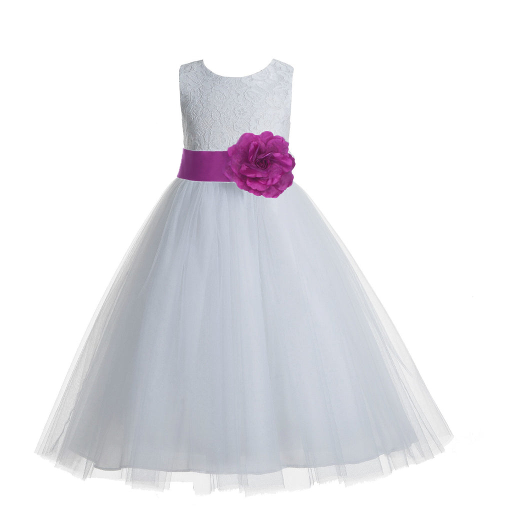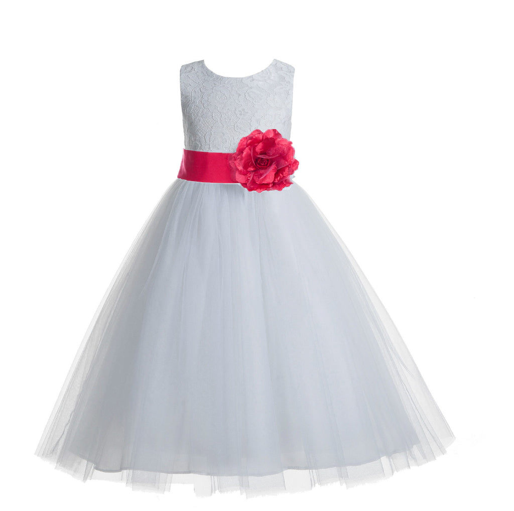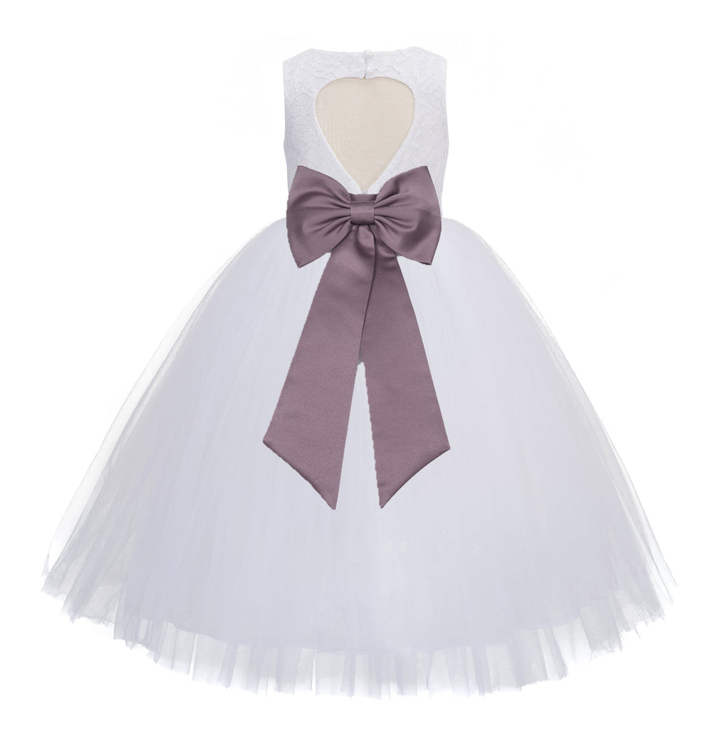 • White Floral Lace Heart Cutout Flower Girl Dress Communion Baptism Junior Bridesmaid Dress 172T(5)