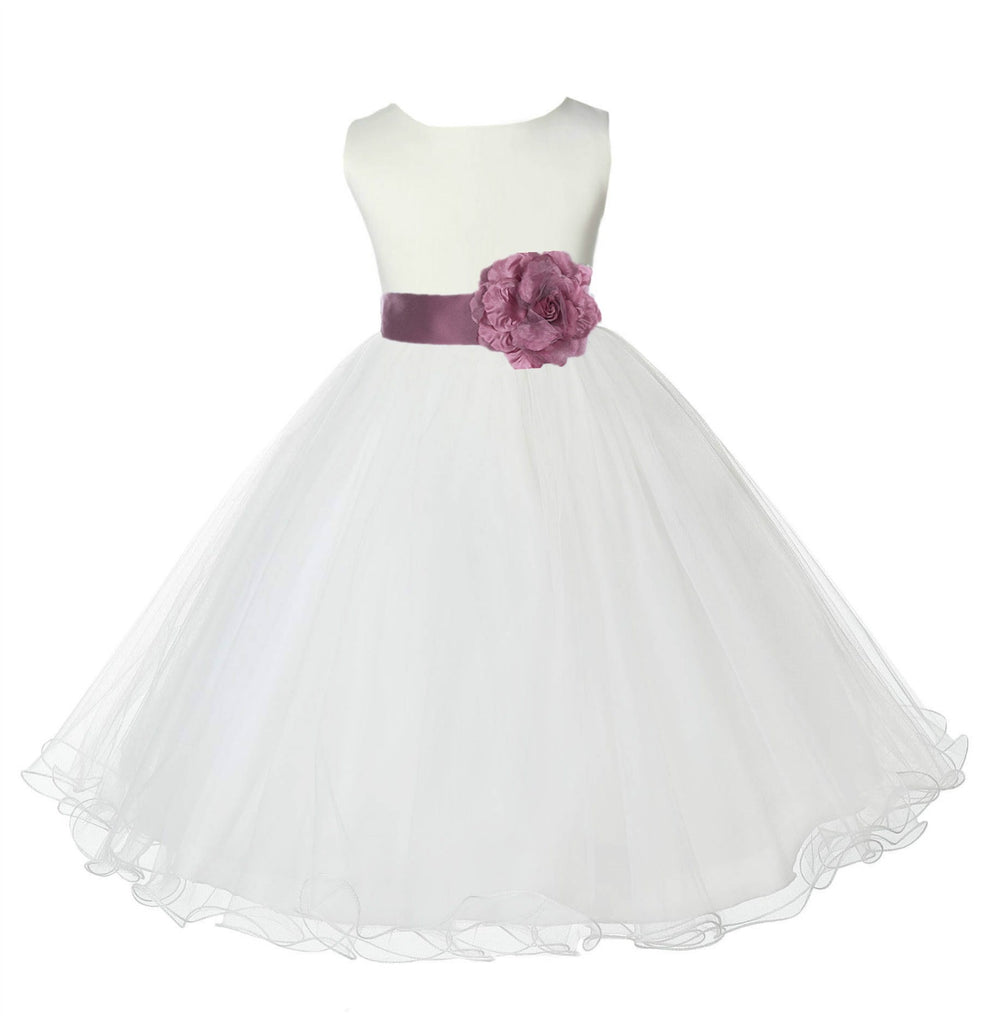 Ivory Formal Wedding Pageant Special Occasions Rattail Edge Tulle Flower Girl Dress 829S(1)