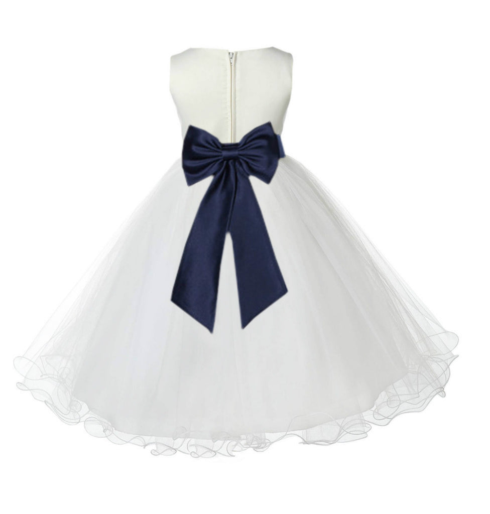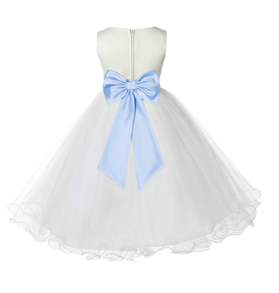 • Ivory Formal Wedding Pageant Special Occasions Rattail Edge Tulle Flower Girl Dress 829T(5)