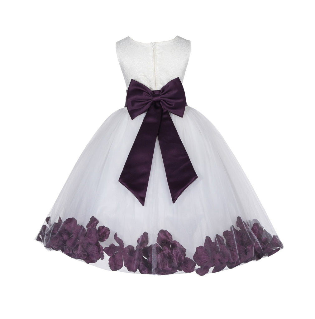Ivory Tulle Floral Lace Top Rose Petals Flower Girl Dress Wedding Pageant Special Occasions 165T(2)