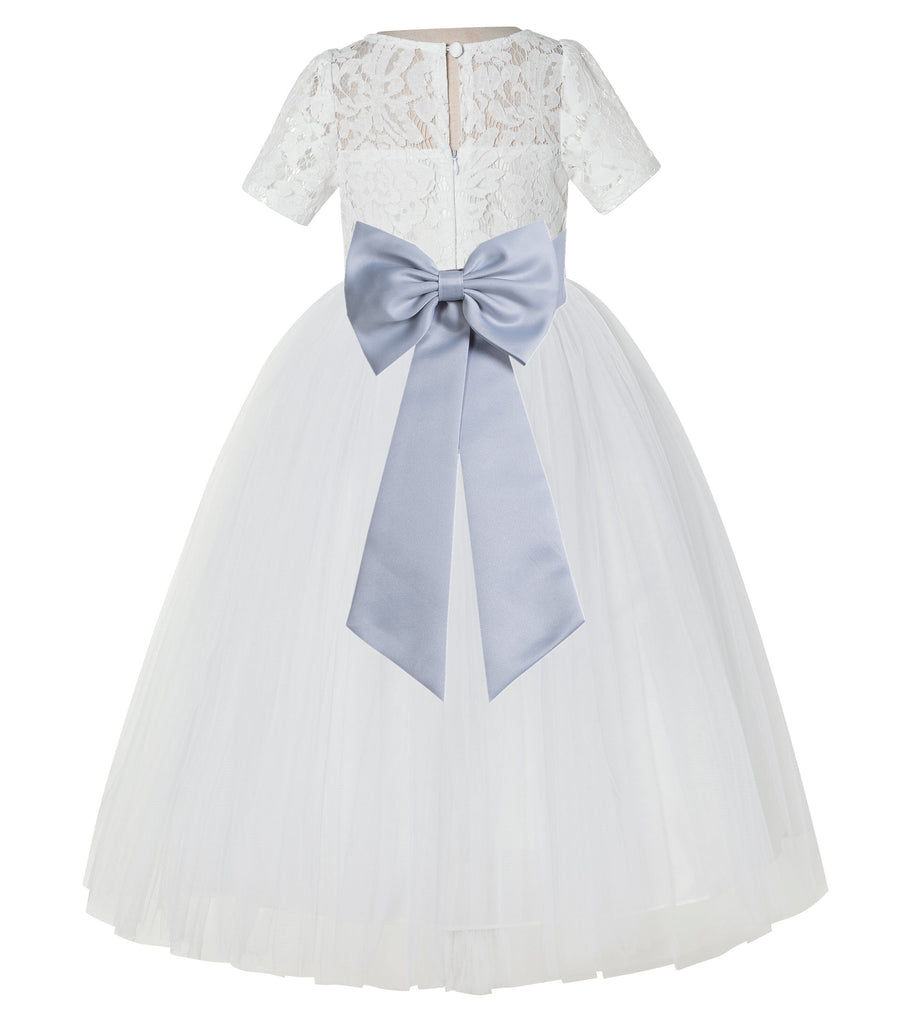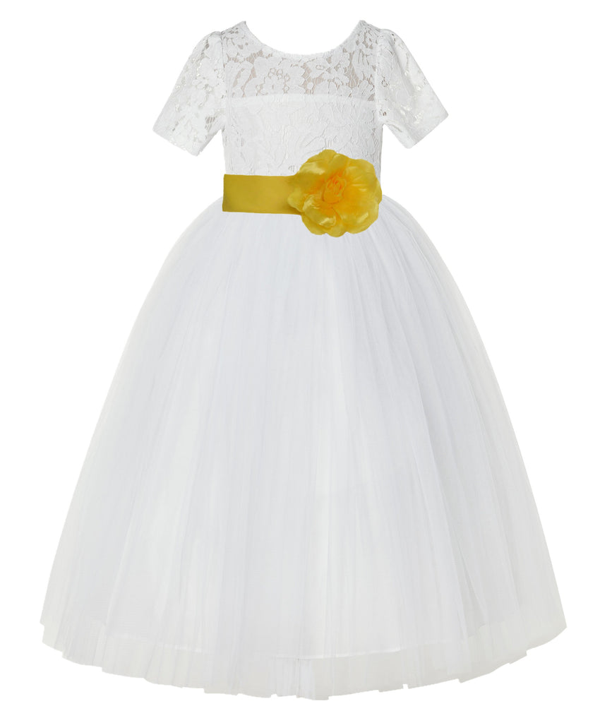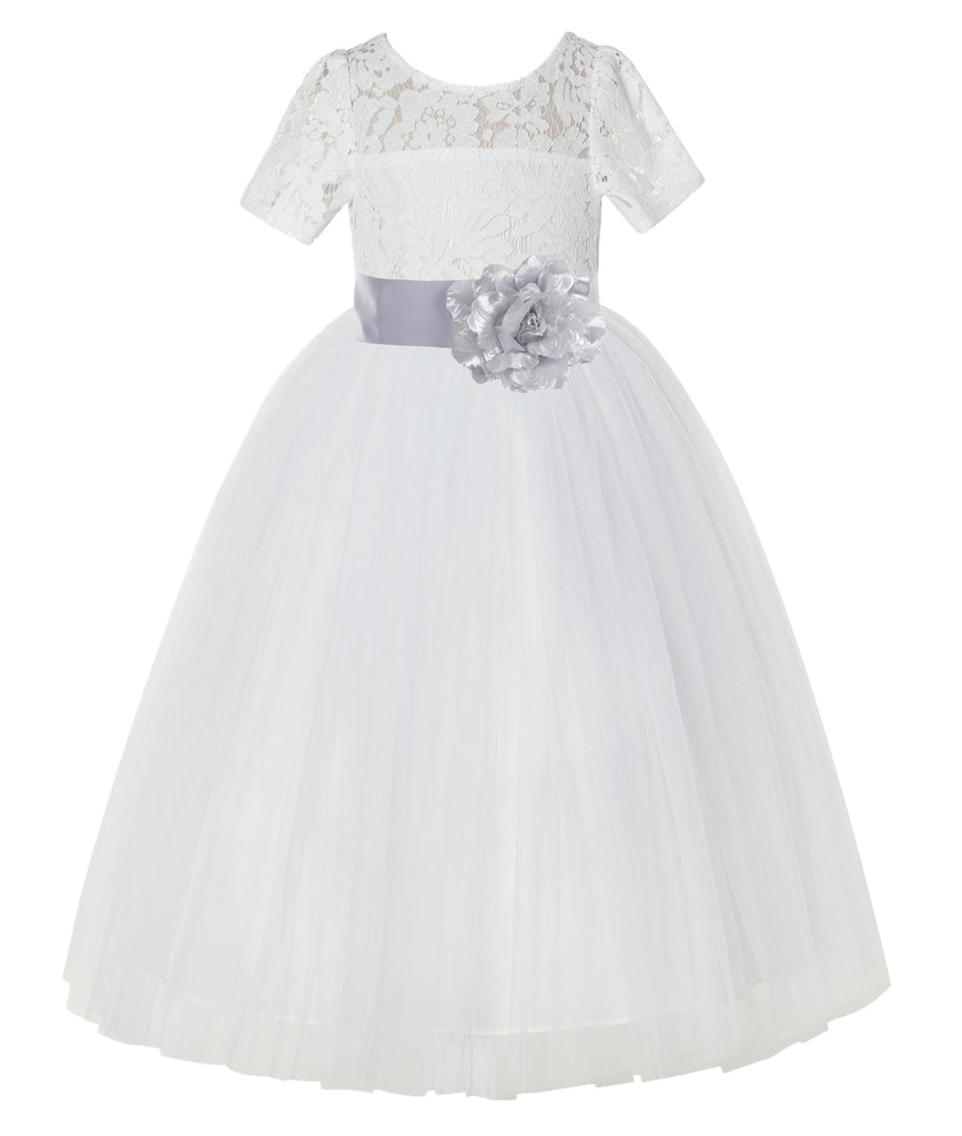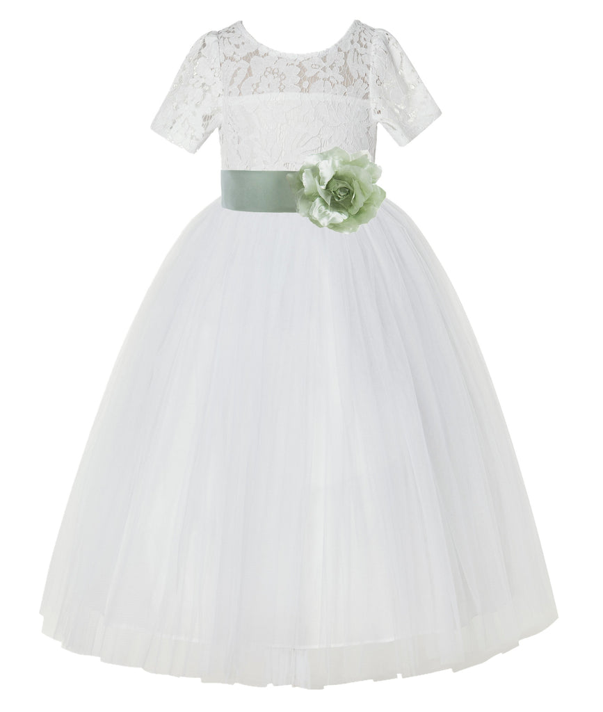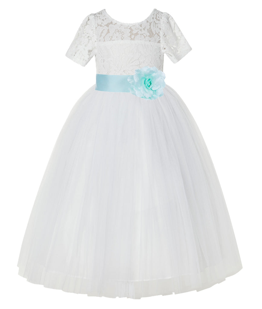 Ivory Floral Lace Flower Girl Dress with Sleeves Formal Pageant Dresses for Toddler Girls LG2T(1)