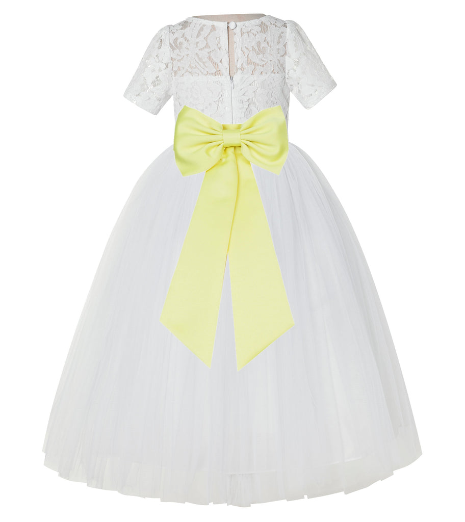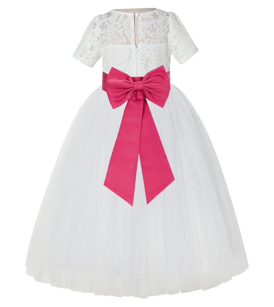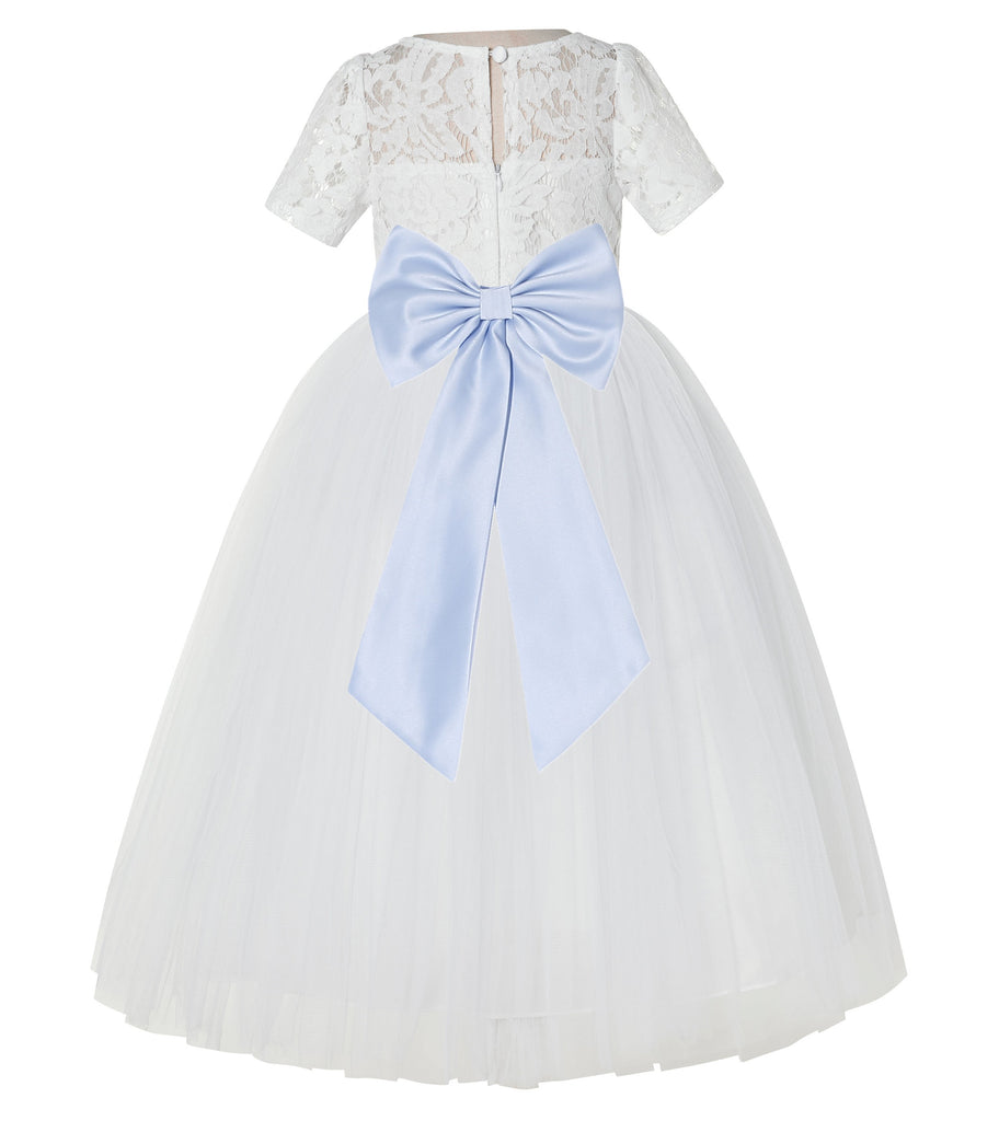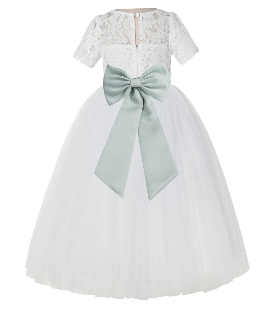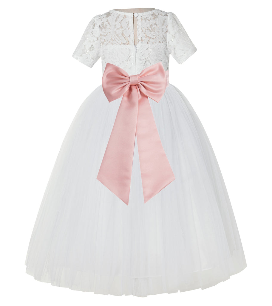 Ivory Floral Lace Flower Girl Dress with Sleeves Formal Pageant Dresses for Toddler Girls LG2T(1)