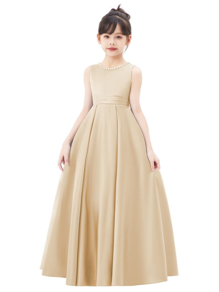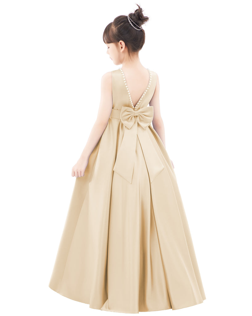 Pearl Beaded V-Back Satin A-Line Flower Girl Dress for Pageant Wedding Ceremonial Gown Toddlers 327