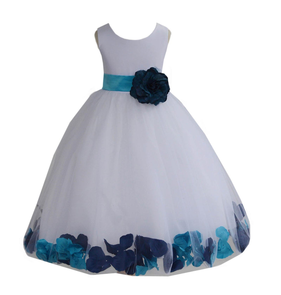 White Elegant Colorful Mixed Rose Petals Bridesmaid Pageant Special Occasion Flower Girl Dress 302T(2)