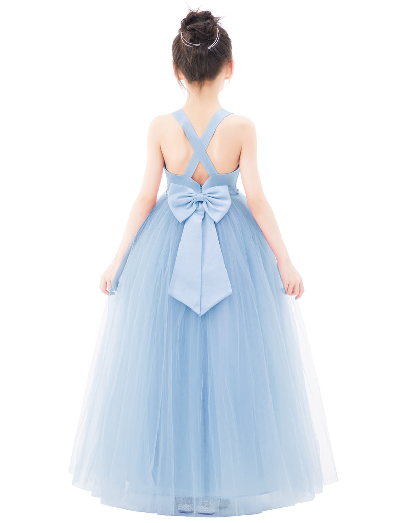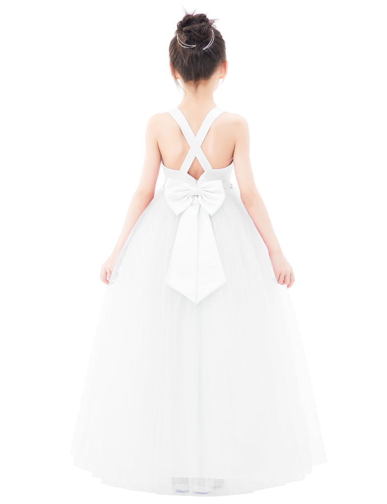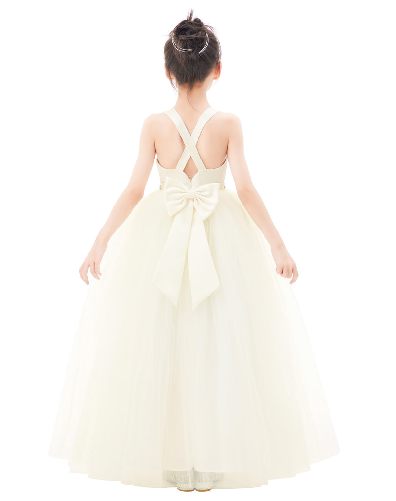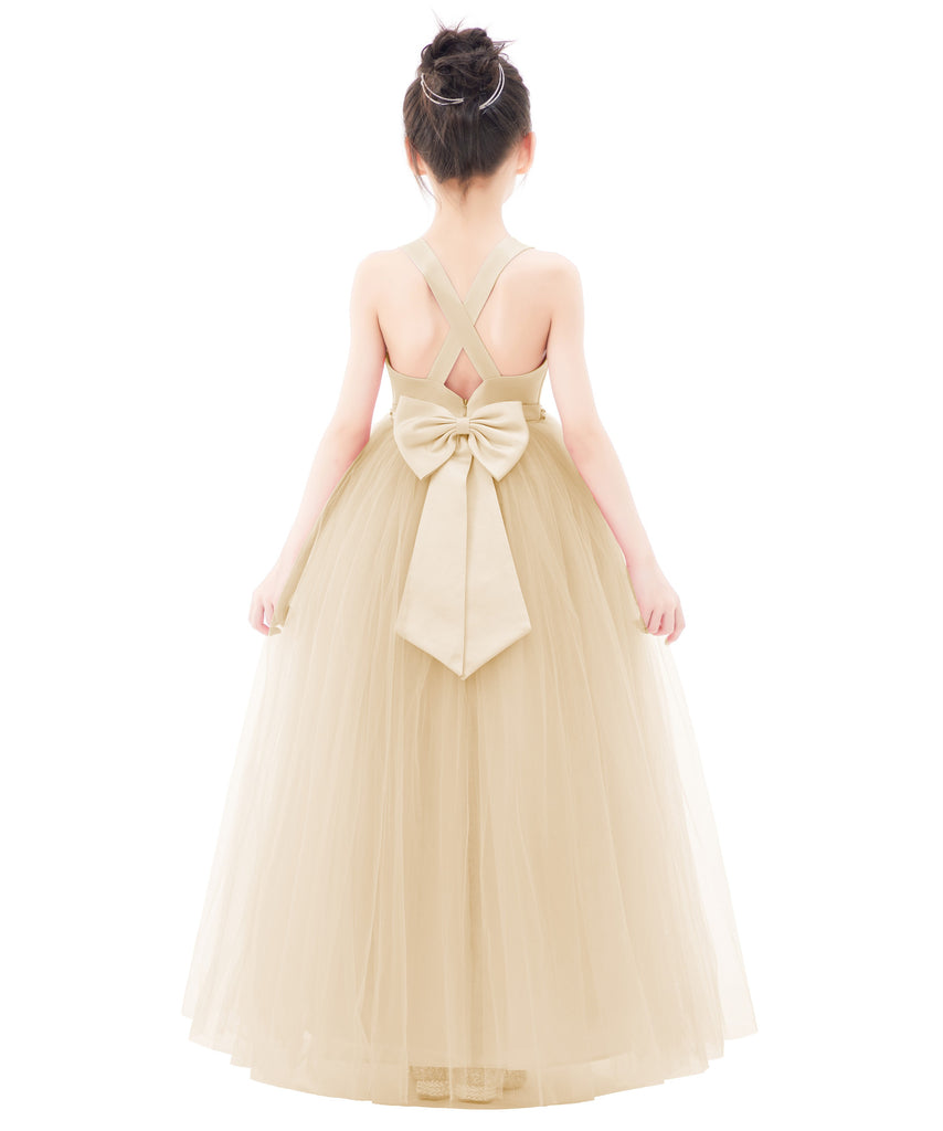 Crossed Straps Satin Flower Girl Dress with Rhinestones for Dance Recital Princess Ballroom Gown 240