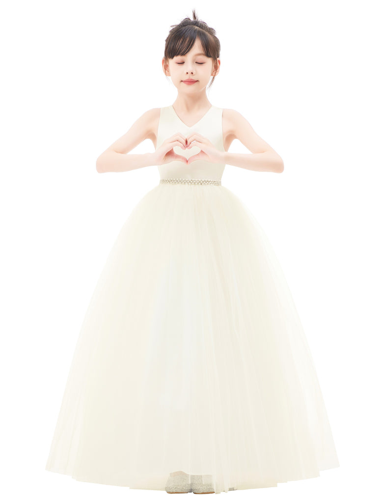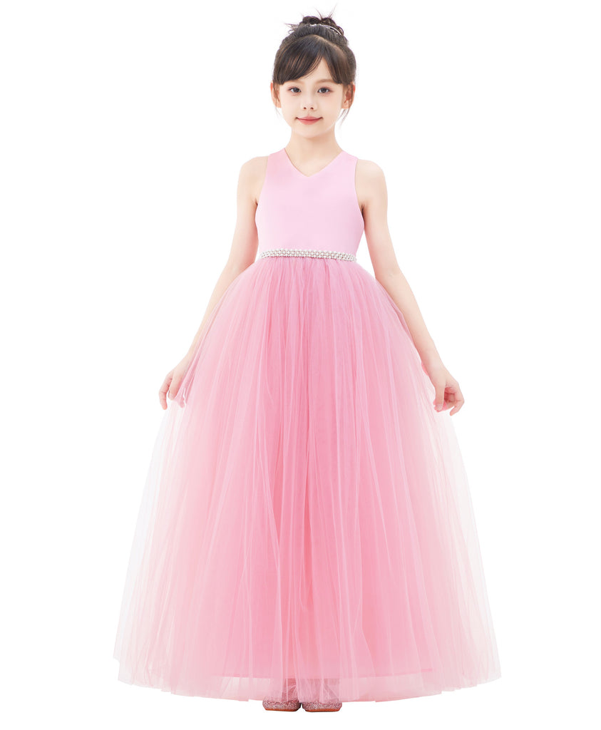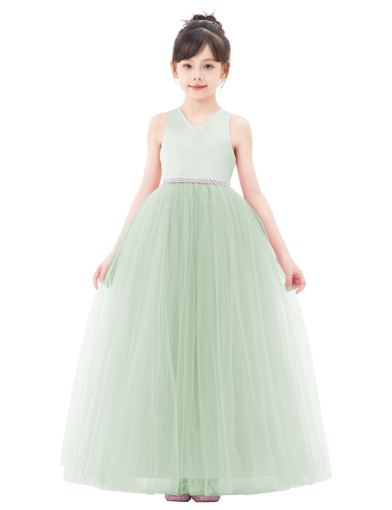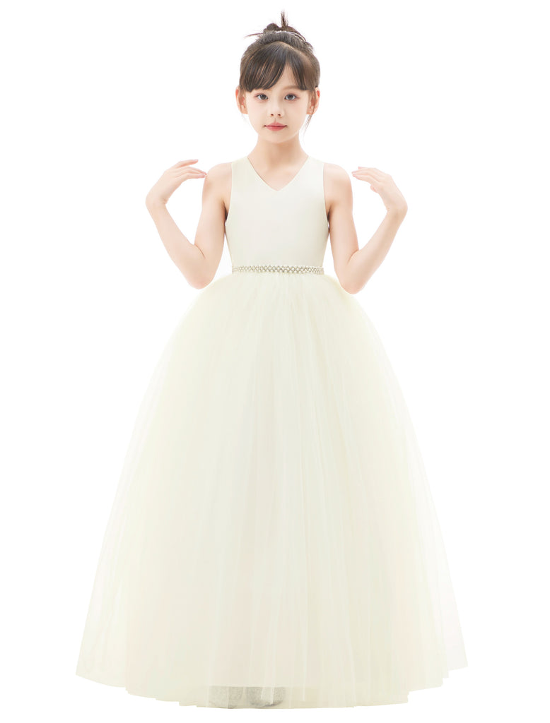 Crossed Straps Satin Flower Girl Dress with Rhinestones for Dance Recital Princess Ballroom Gown 240